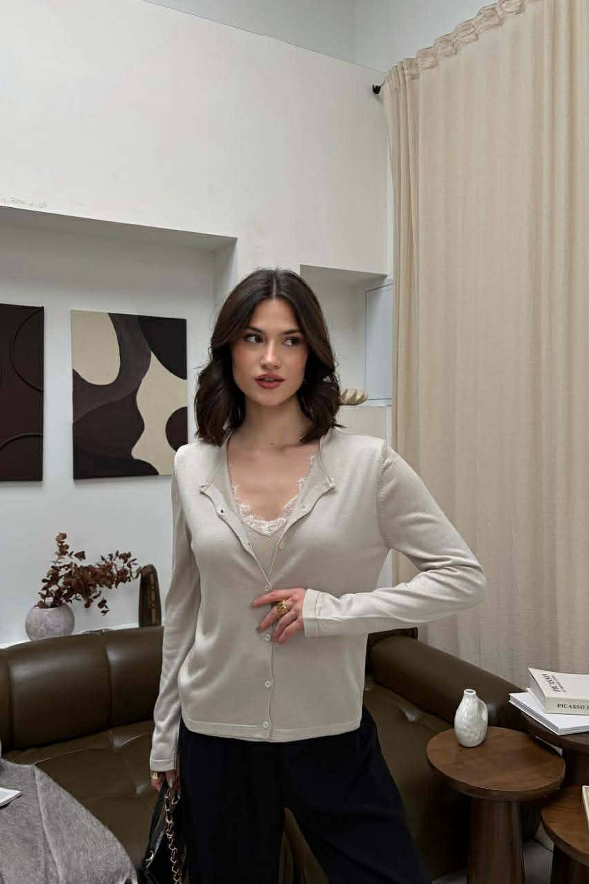 2 IN 1 CARDIGAN + TANK TOP WOMAN CARDIGAN BEIGE/BEZHE