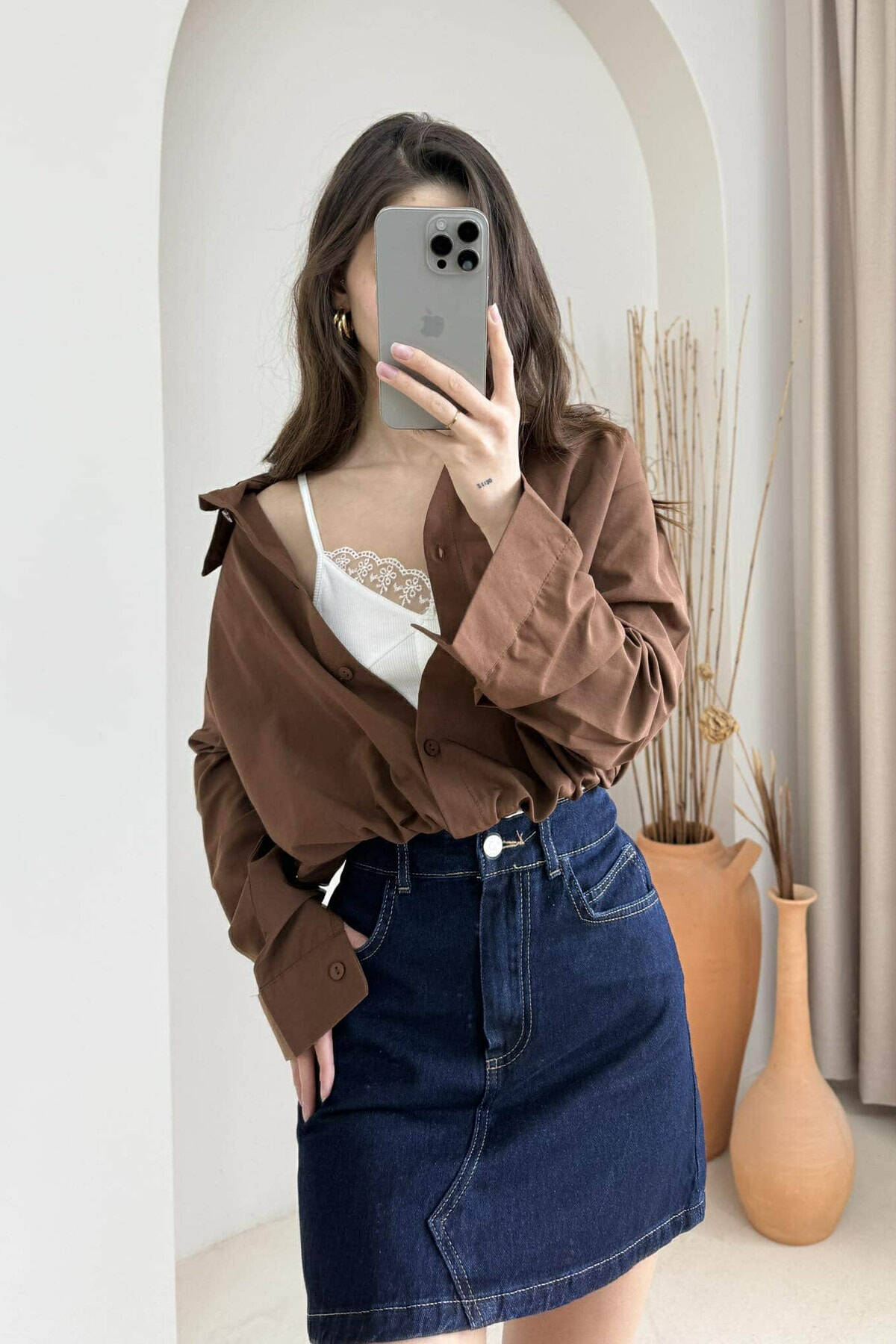 2 NË 1 KËMISHË+KANATIERE PËR FEMRA NË NGJYRËN KAFE
