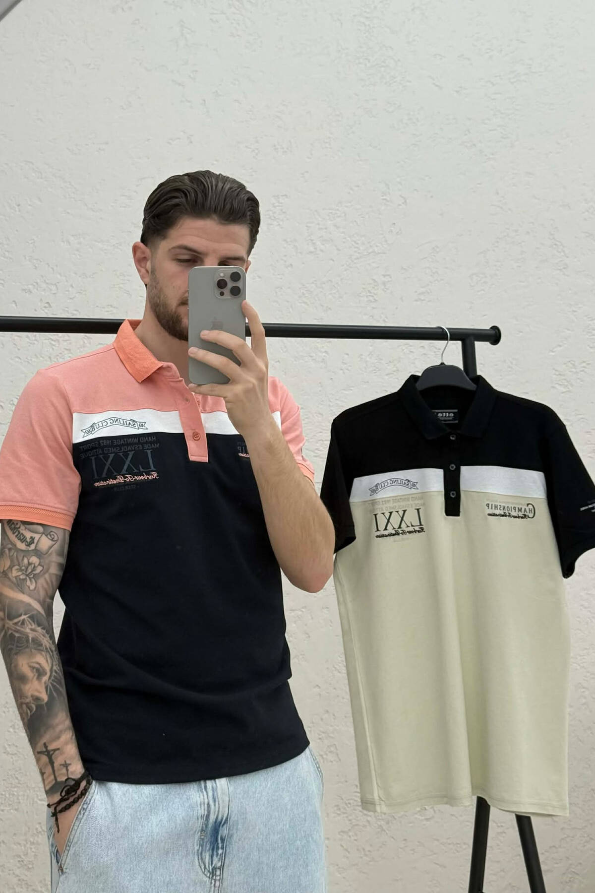 PACK OF 2 PIECES POLO NECK MEN T-SHIRTS BLUE-BEIGE/BLBZH