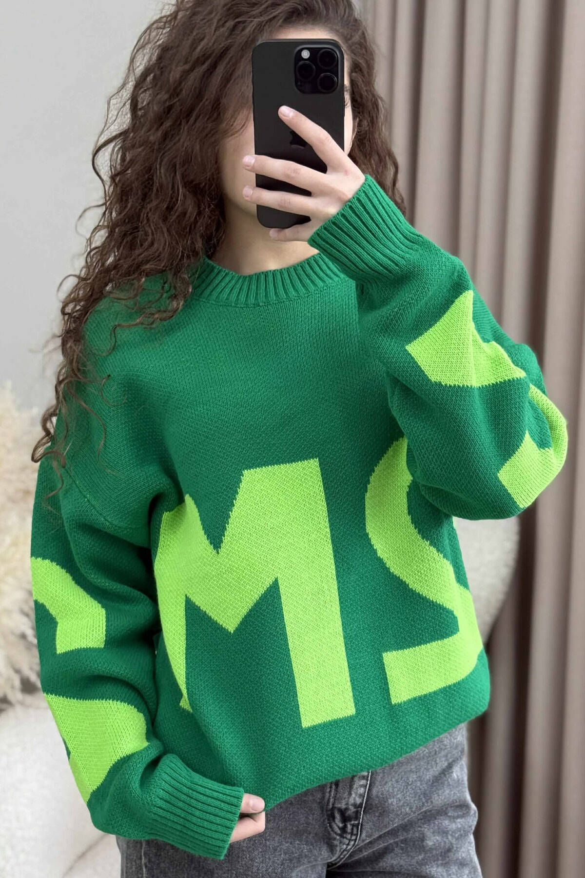 2M FRONT WRITTING KNITTED WOMEN SWEATER GREEN/JESHILE
