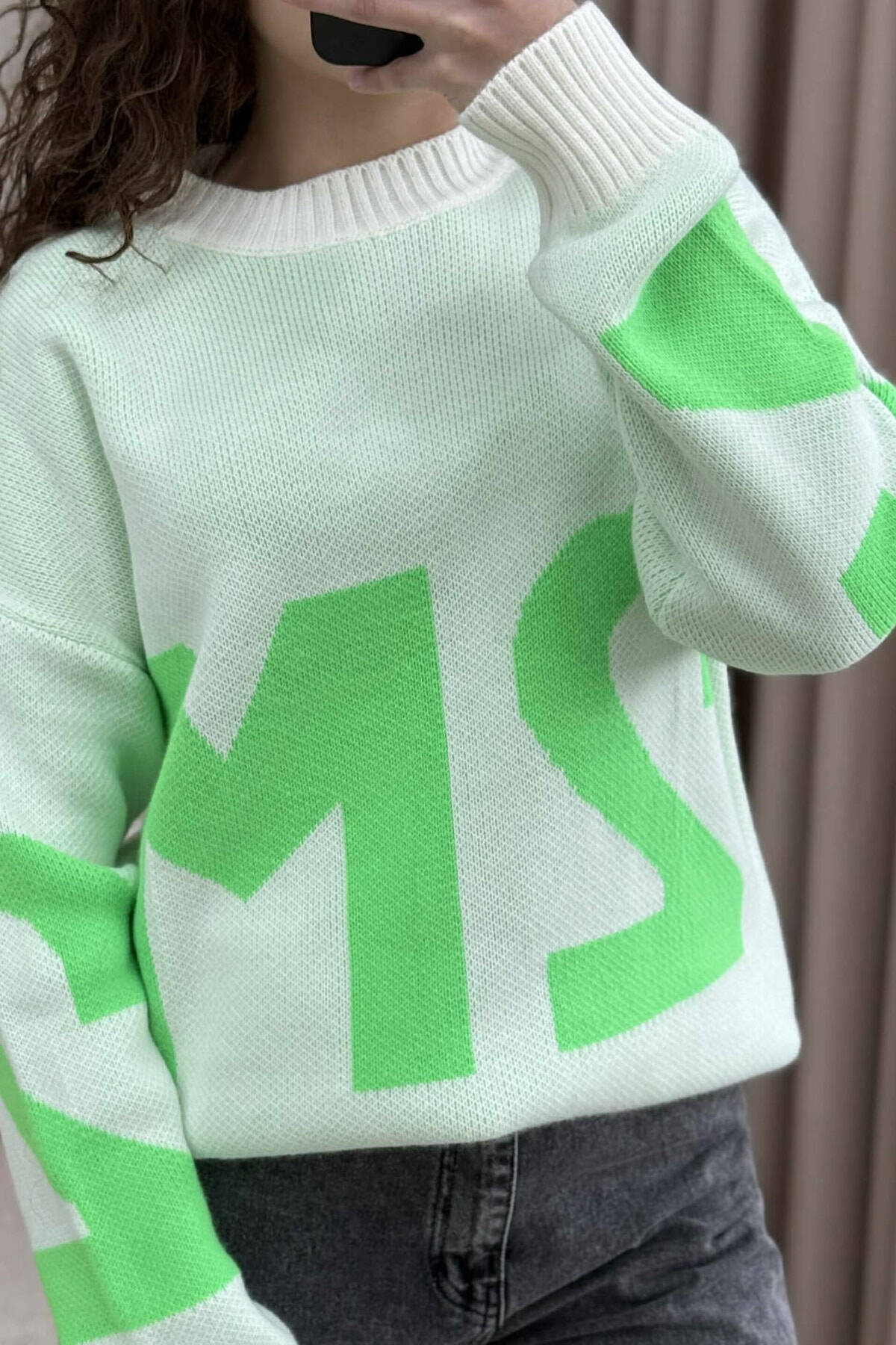 2M FRONT WRITTING KNITTED WOMEN SWEATER MINT/MENTE
