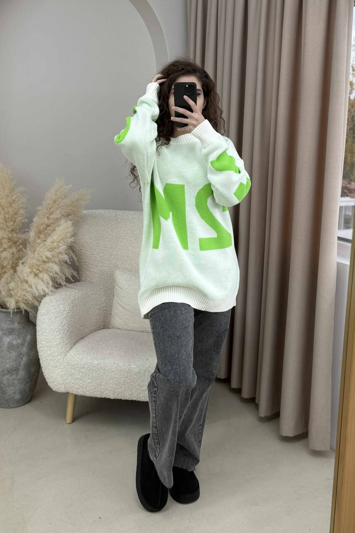 2M FRONT WRITTING KNITTED WOMEN SWEATER WHITE-E BARDHE