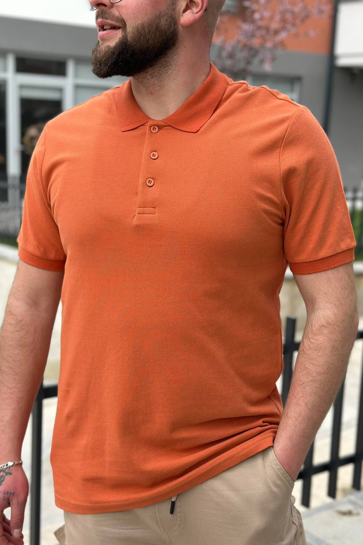 3 BUTTONS POLO NECK MEN T-SHIRT BRICK/TULLE