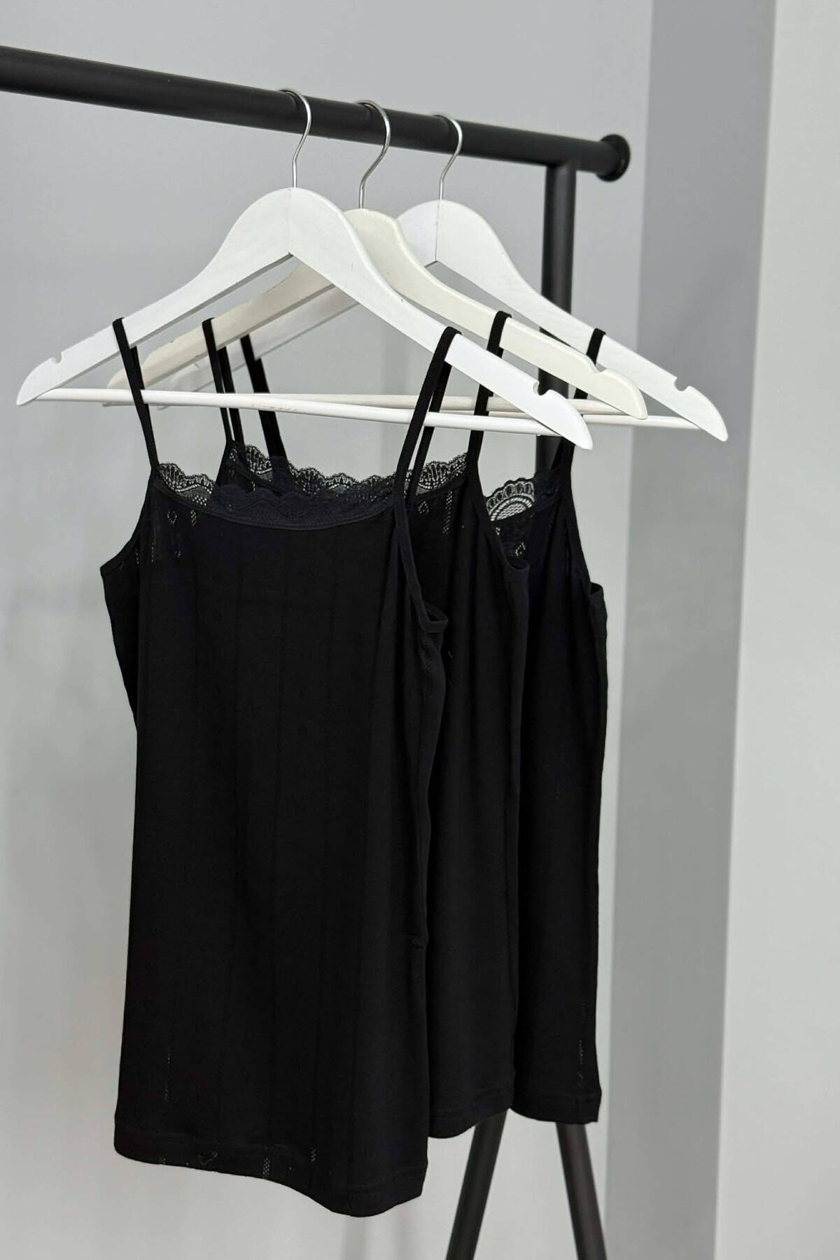 3 PIECE LACE DETAIL ONE COLOR WOMEN SINGET BLACK/ E ZEZE