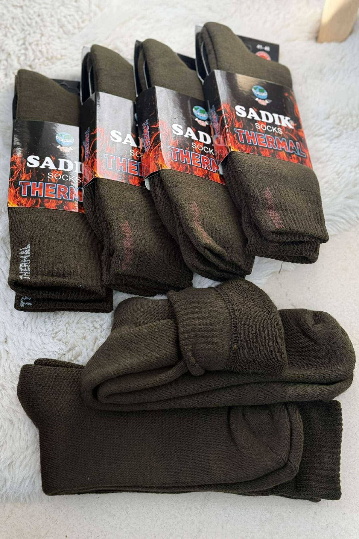 6 PAIR THERMAL MEN CREW SOCKS IN DARK GREEN COLOR