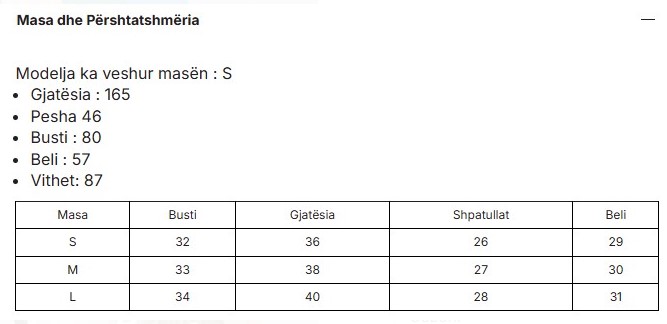 Size chart