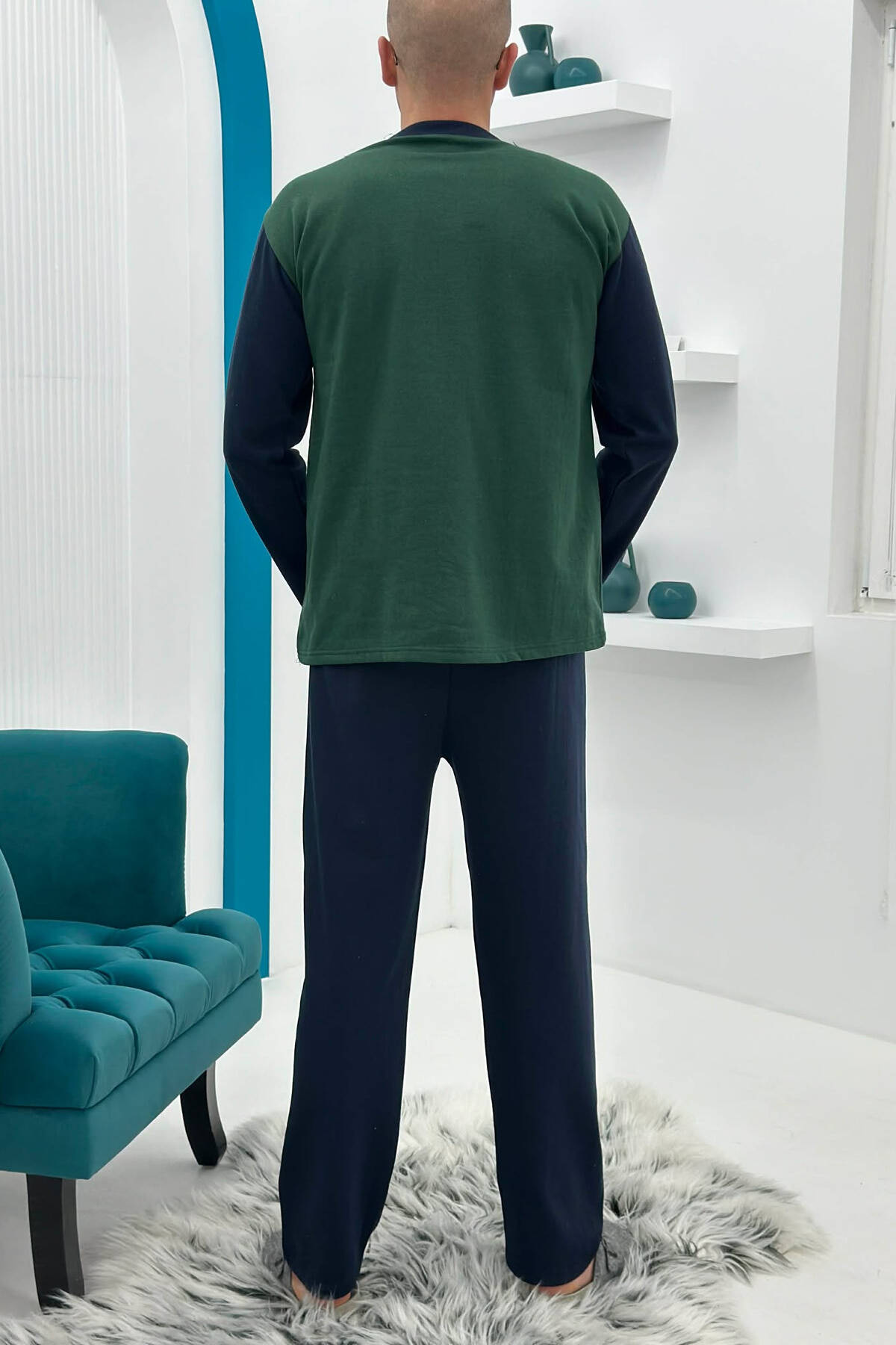 BUTTONED NECK SIMPLE SWEATSHIRT+SWEATPANTS MEN PYJAMAS DARK BLUE/BEE