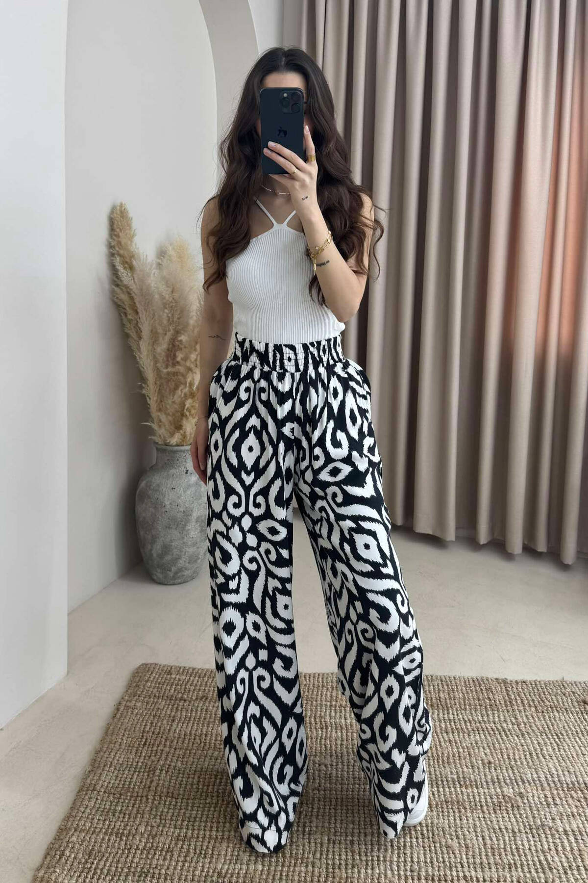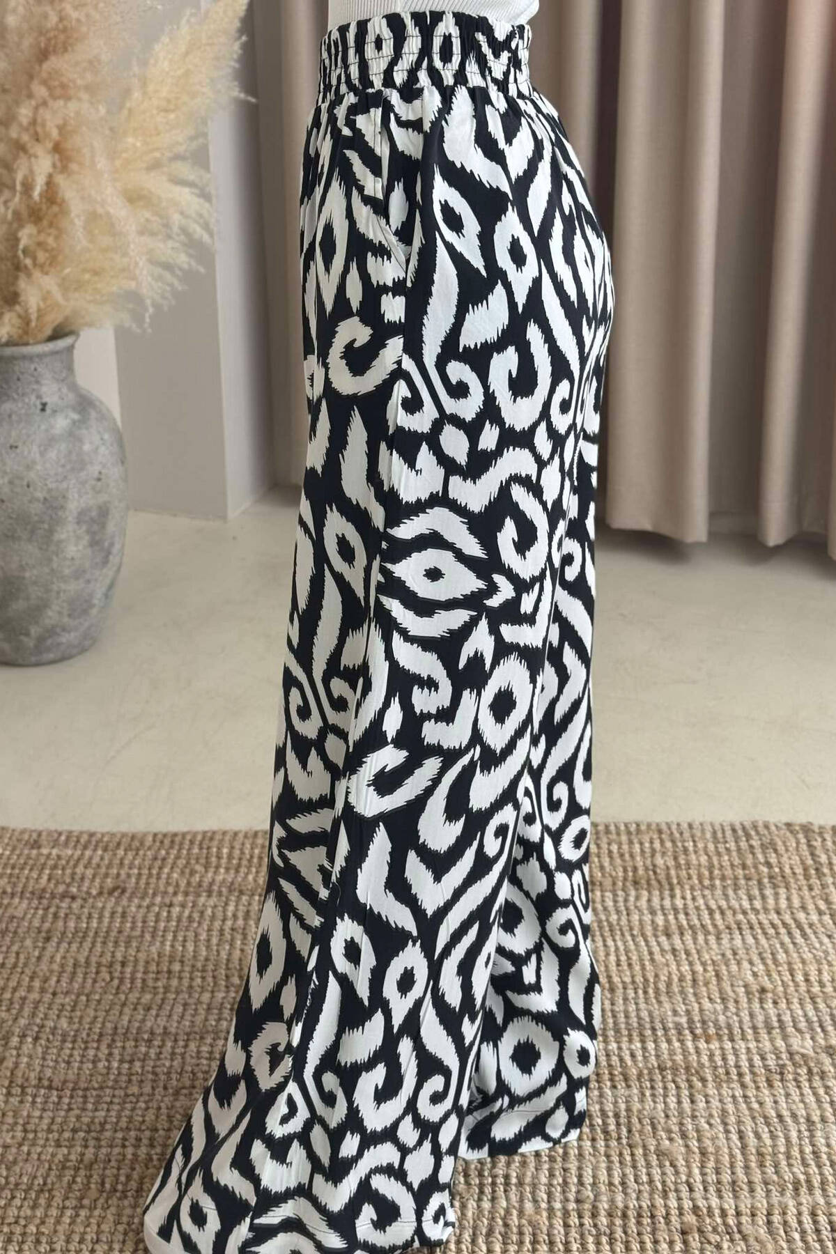 ABSTRACT DESIGN WIDE LEG WOMEN TROUSERS BLACK-WHITE/ZEBA
