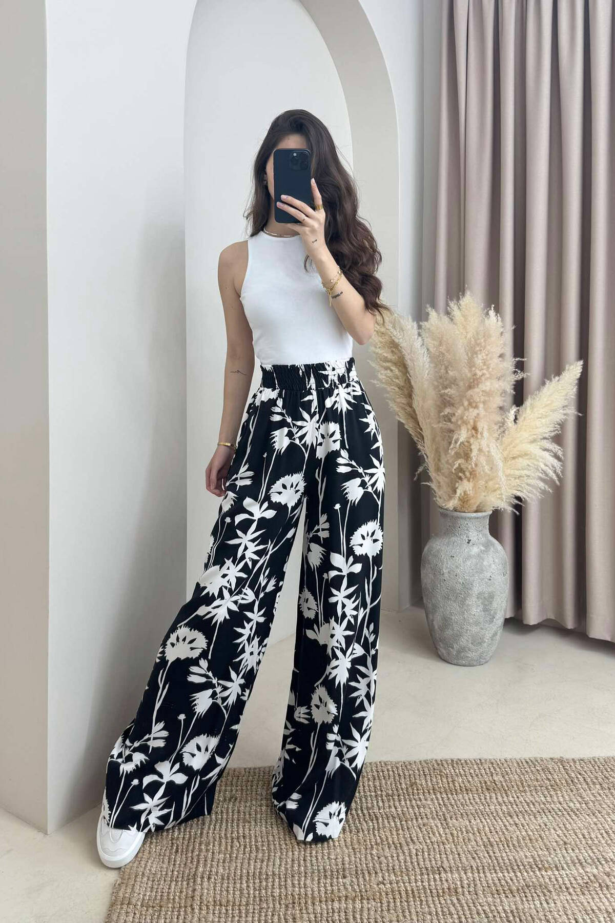 ABSTRACT DESIGN WIDE LEG WOMEN TROUSERS BLACK/ E ZEZE