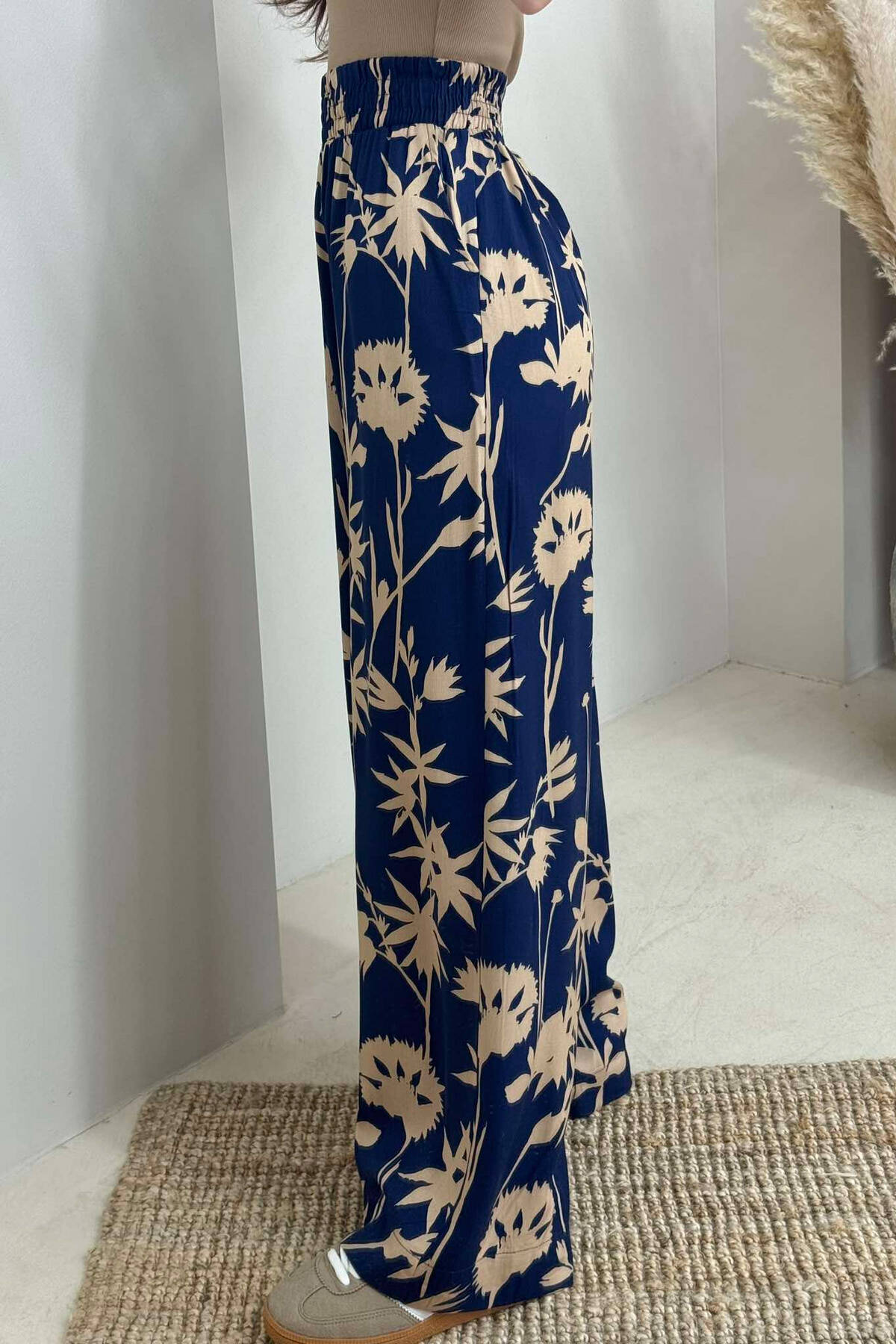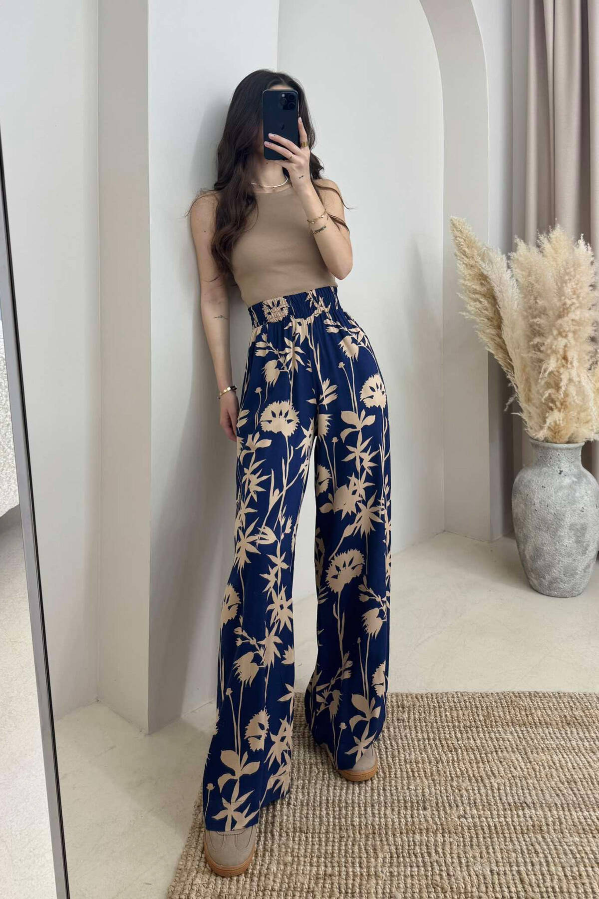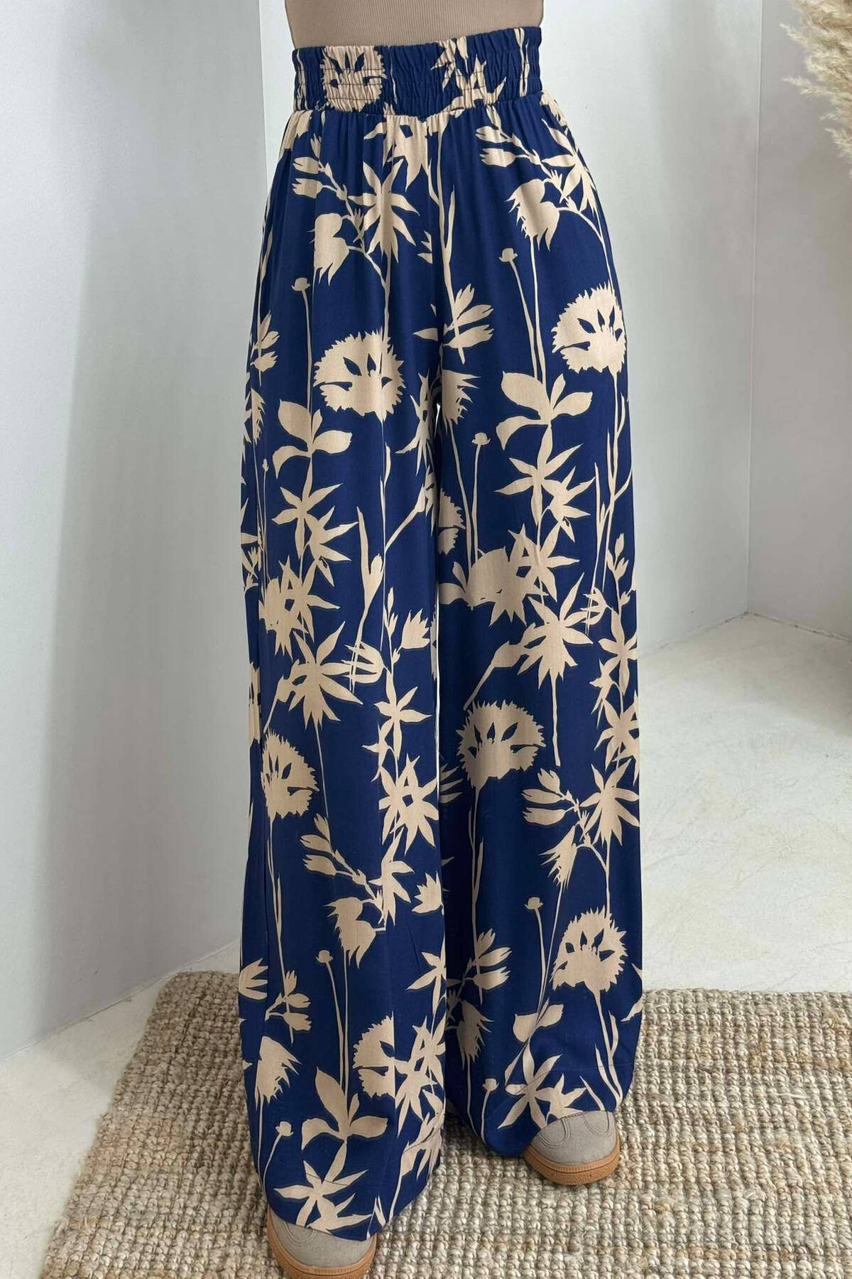 PANTALLONA TË GJERA ME DIZAJNE TË NDRYSHME PËR FEMRA NË NGJYRËN BLU