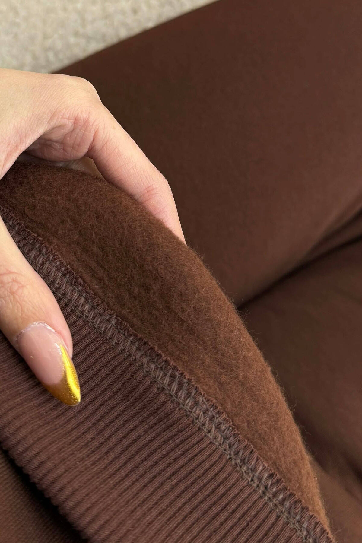 ALO CROPPED SWEATSHIRT+SWEATPANTS FLUFFY WOMEN SET BROWN/KAFE