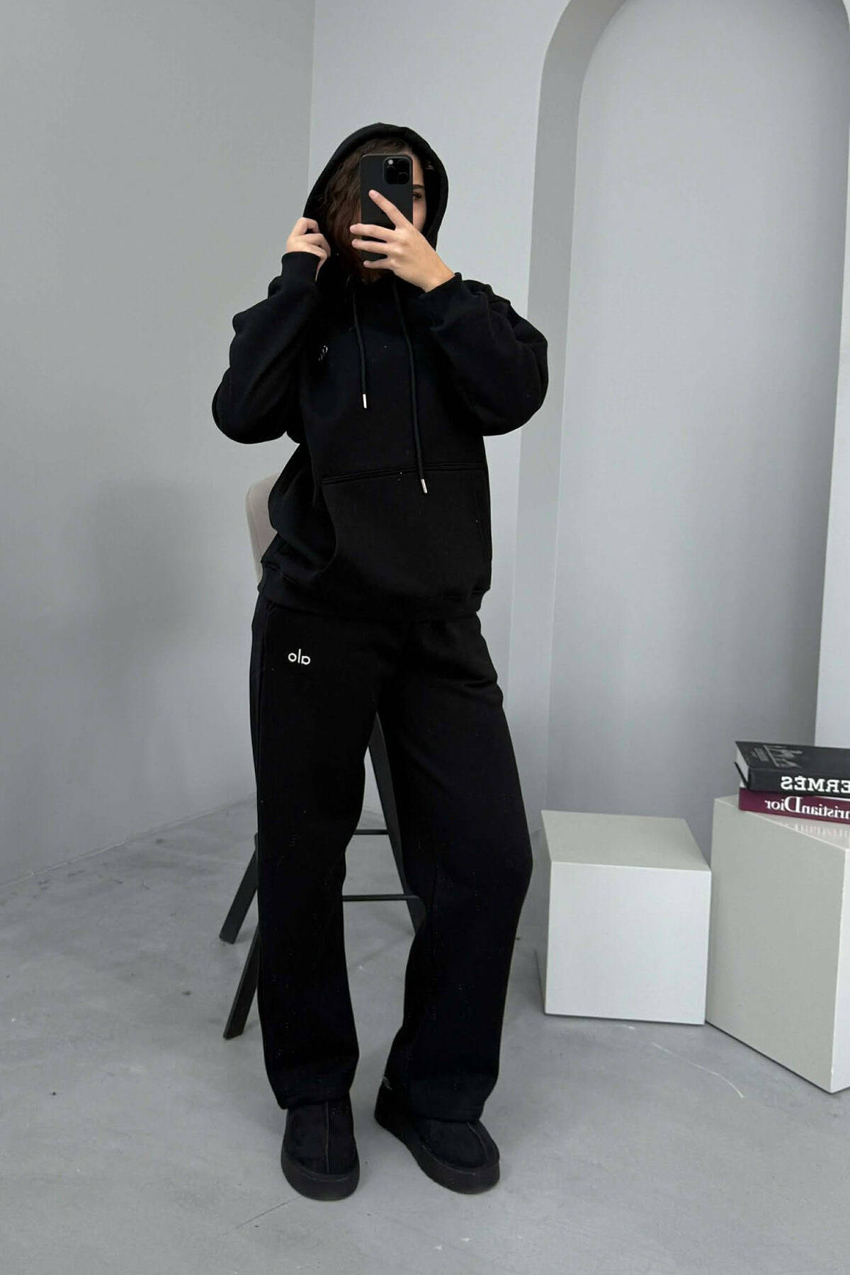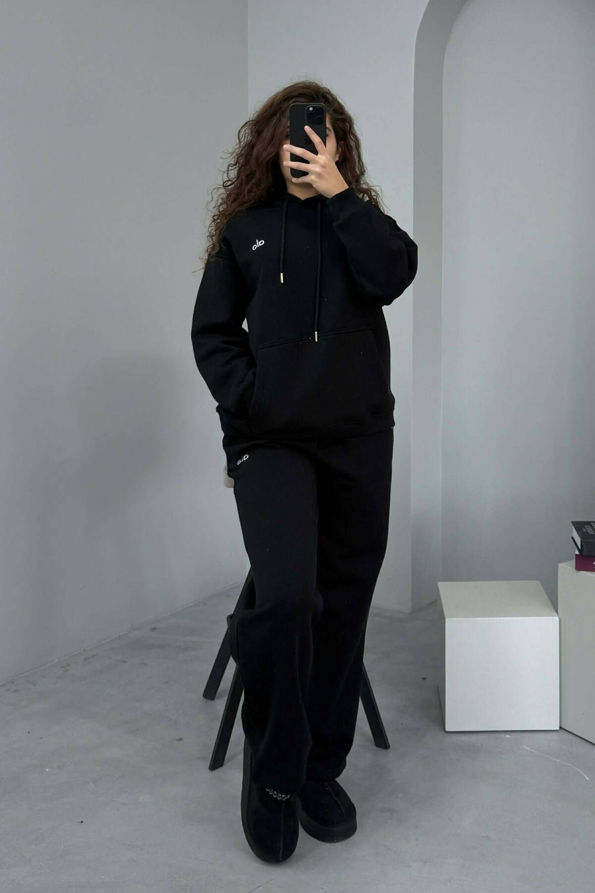 KOSTUM ALO ME PUSH HOODIE+TUTA PËR FEMRA NË NGJYRË TË ZEZË