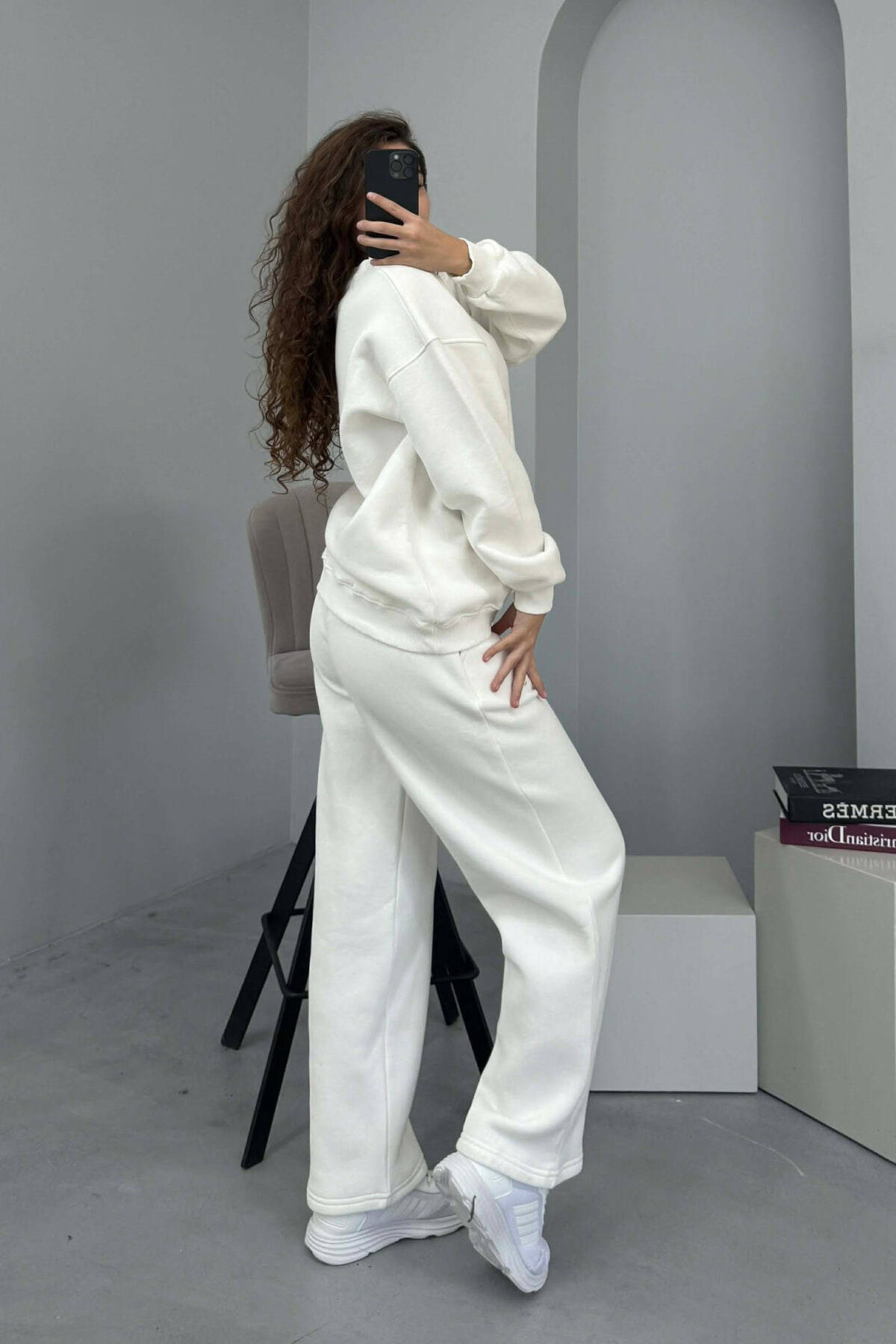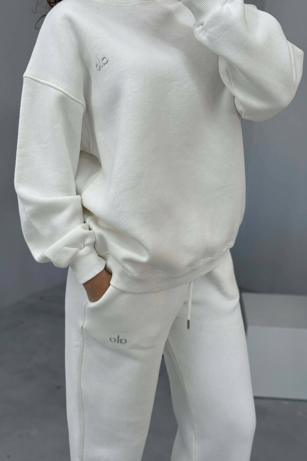 ALO SWEATSHIRT+SWEATPANTS FLUFFY WOMEN SET WHITE-E BARDHE