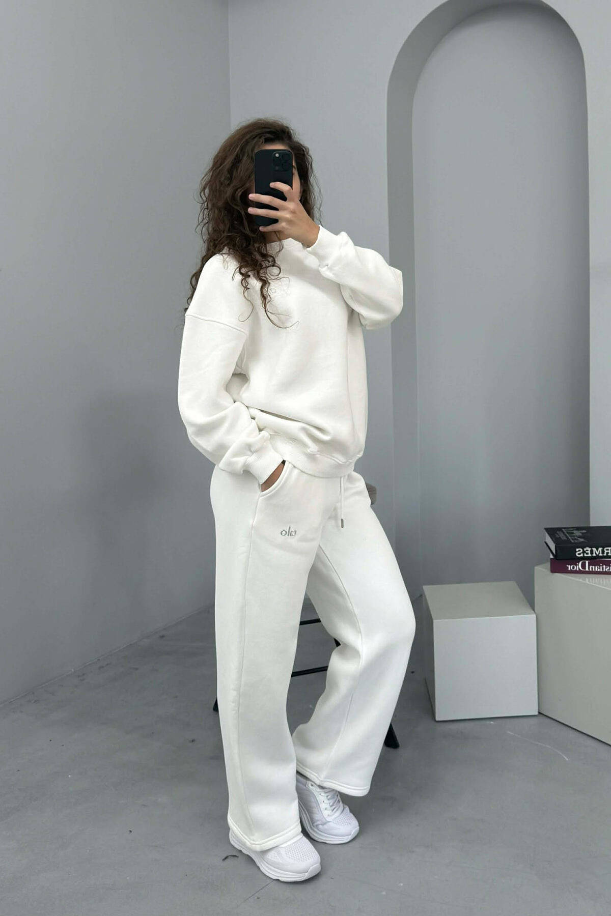ALO SWEATSHIRT+SWEATPANTS FLUFFY WOMEN SET WHITE-E BARDHE