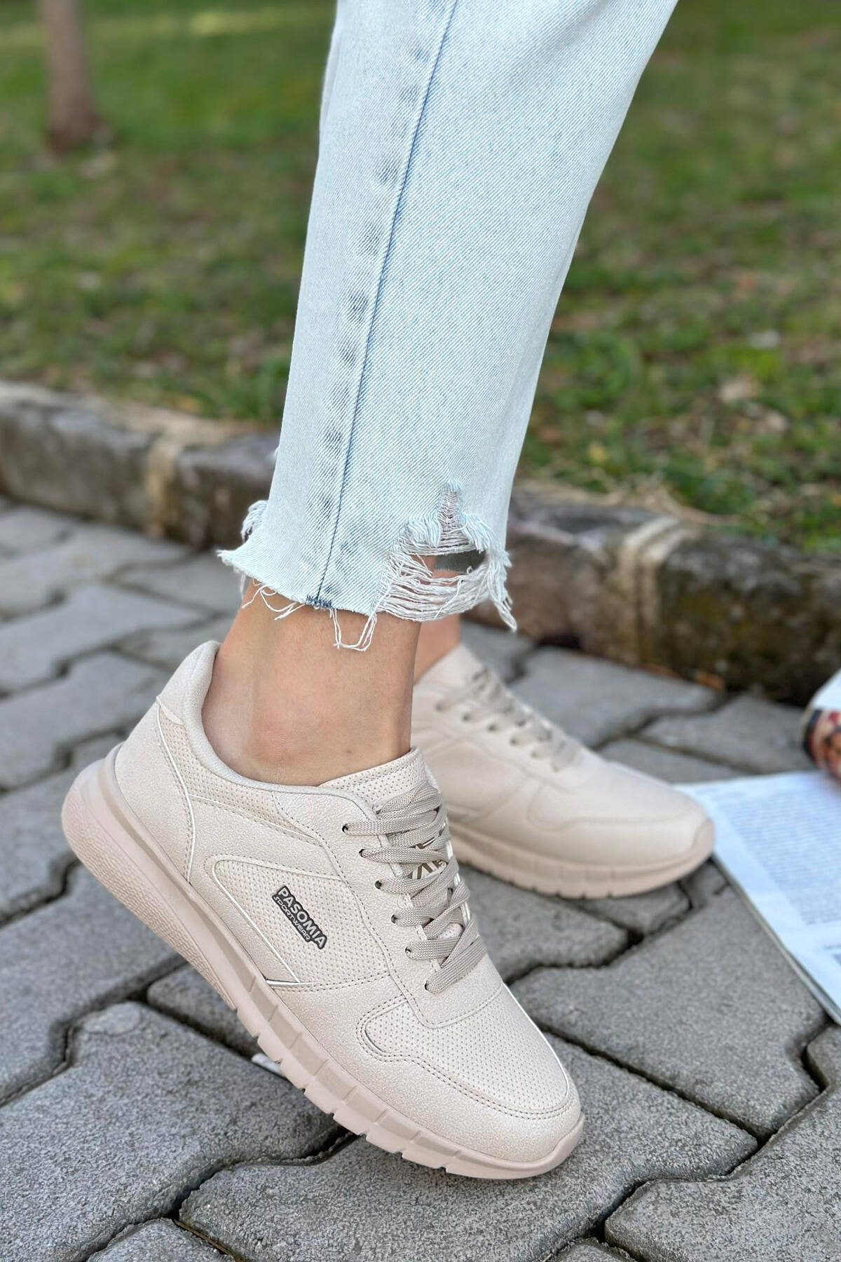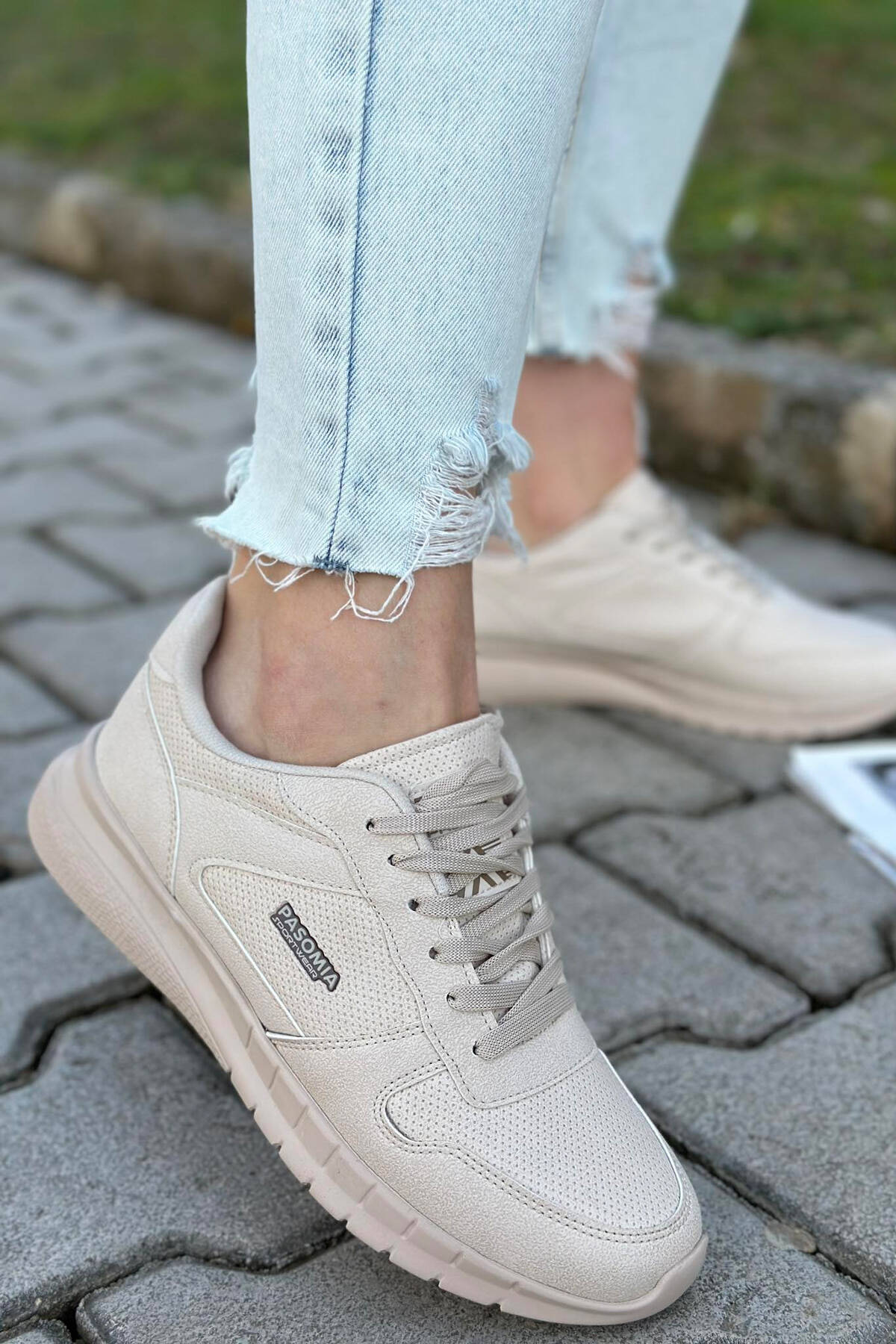 ATLETE LËKURË ME LIDHËSE PËR FEMRA NË NGJYRËN BEZHË