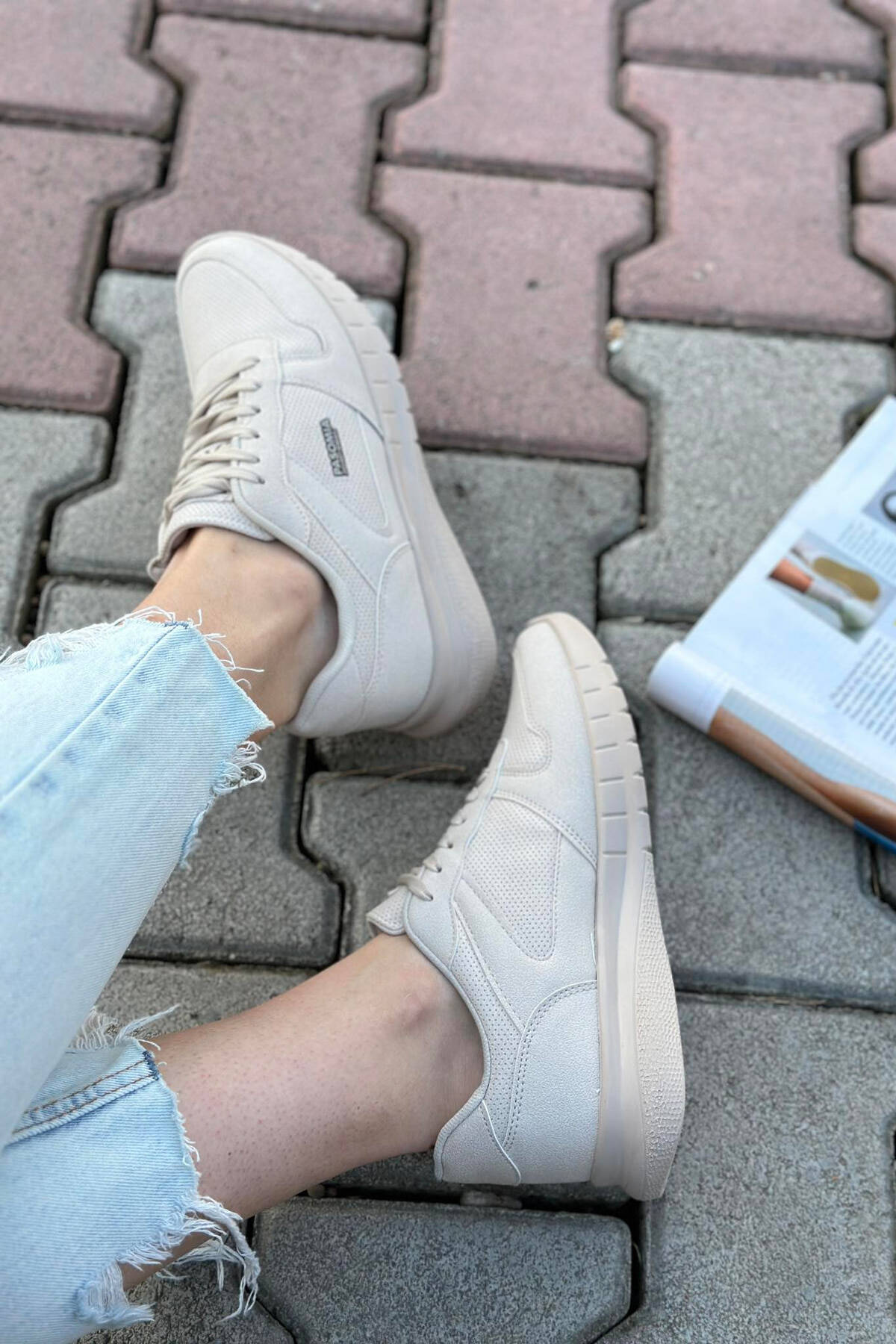 SIMPLE PLATFORM LACING WOMEN SNEAKERS BEIGE/BEZHE