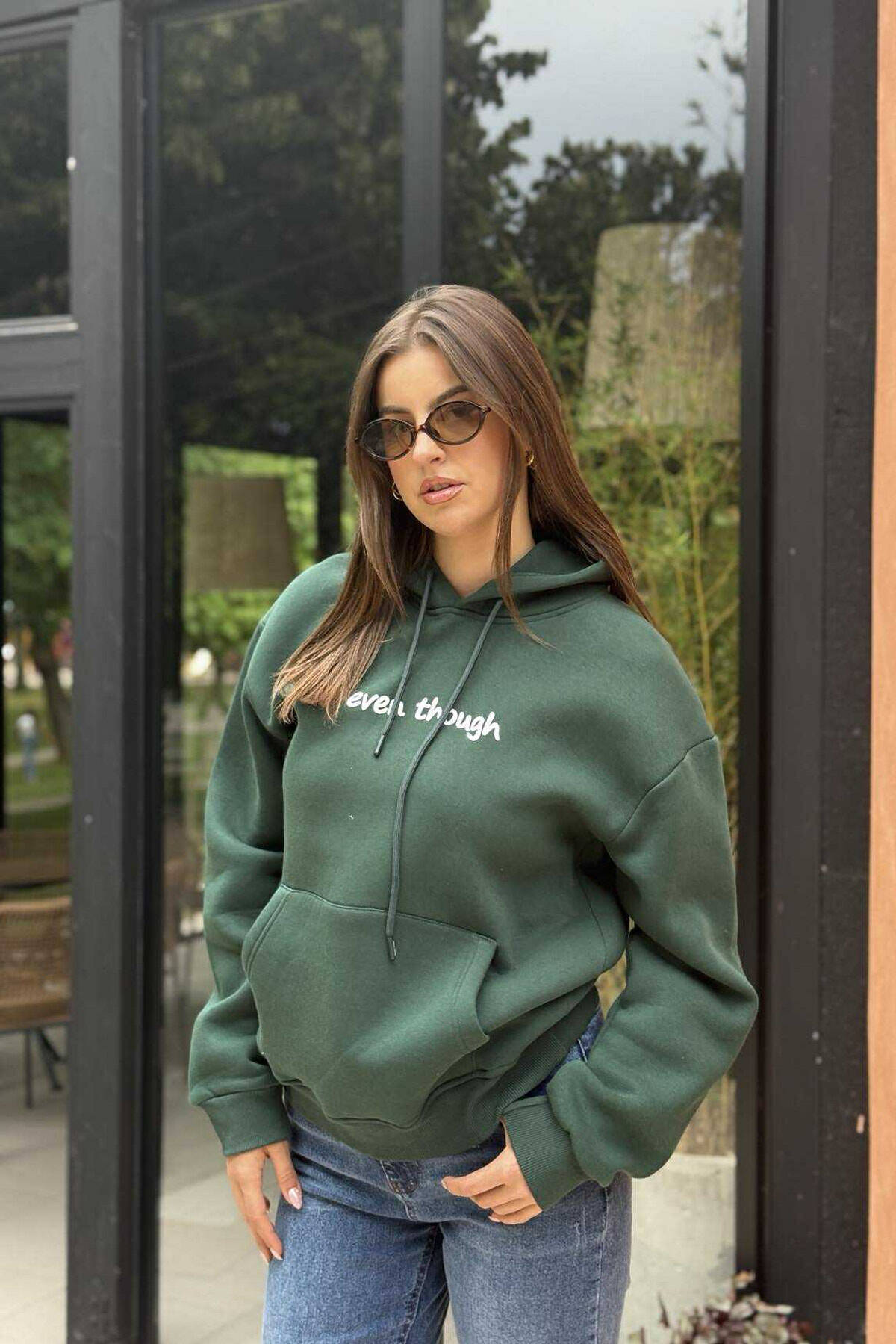 FLUFFY SIMPLE ONE COLOR WOMEN HOODIE GREEN/JESHILE