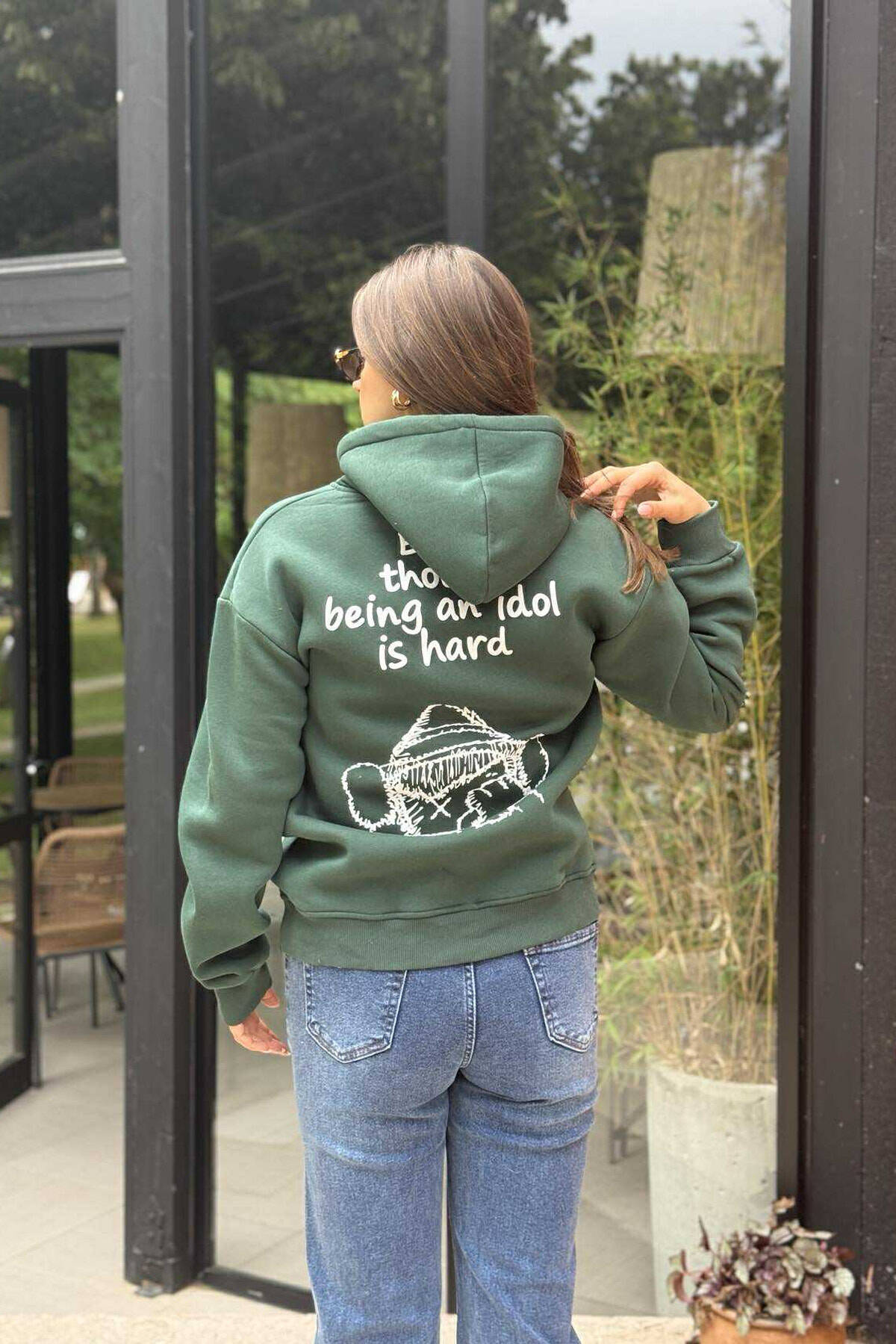 BACK IMAGE & WRITTINGS FLUFFY WOMEN HOODIE GREEN/JESHILE