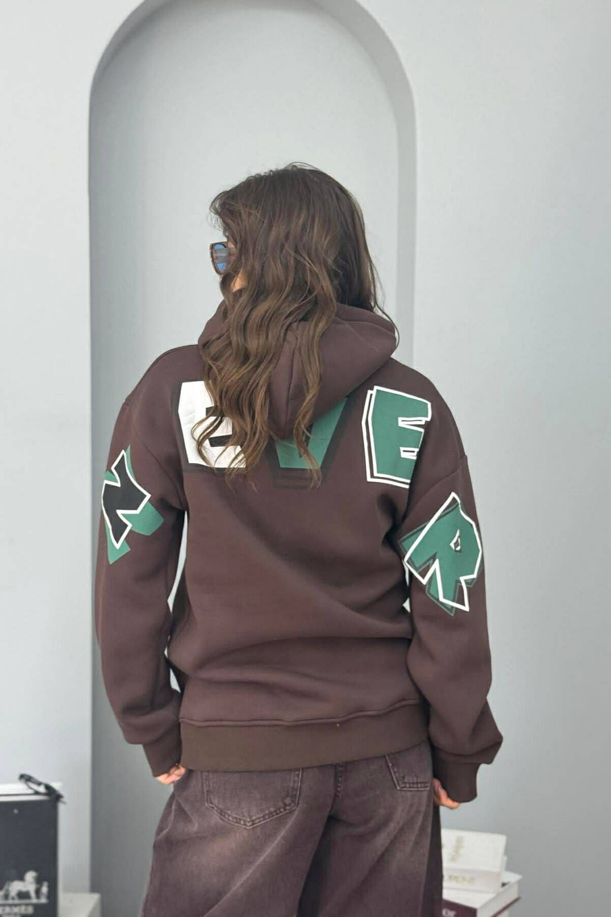 HOODIE ME PUSH ME SHKRIME NE PJESEN E PASME PER FEMRA NE NGJYRE KAFE TE ERRET