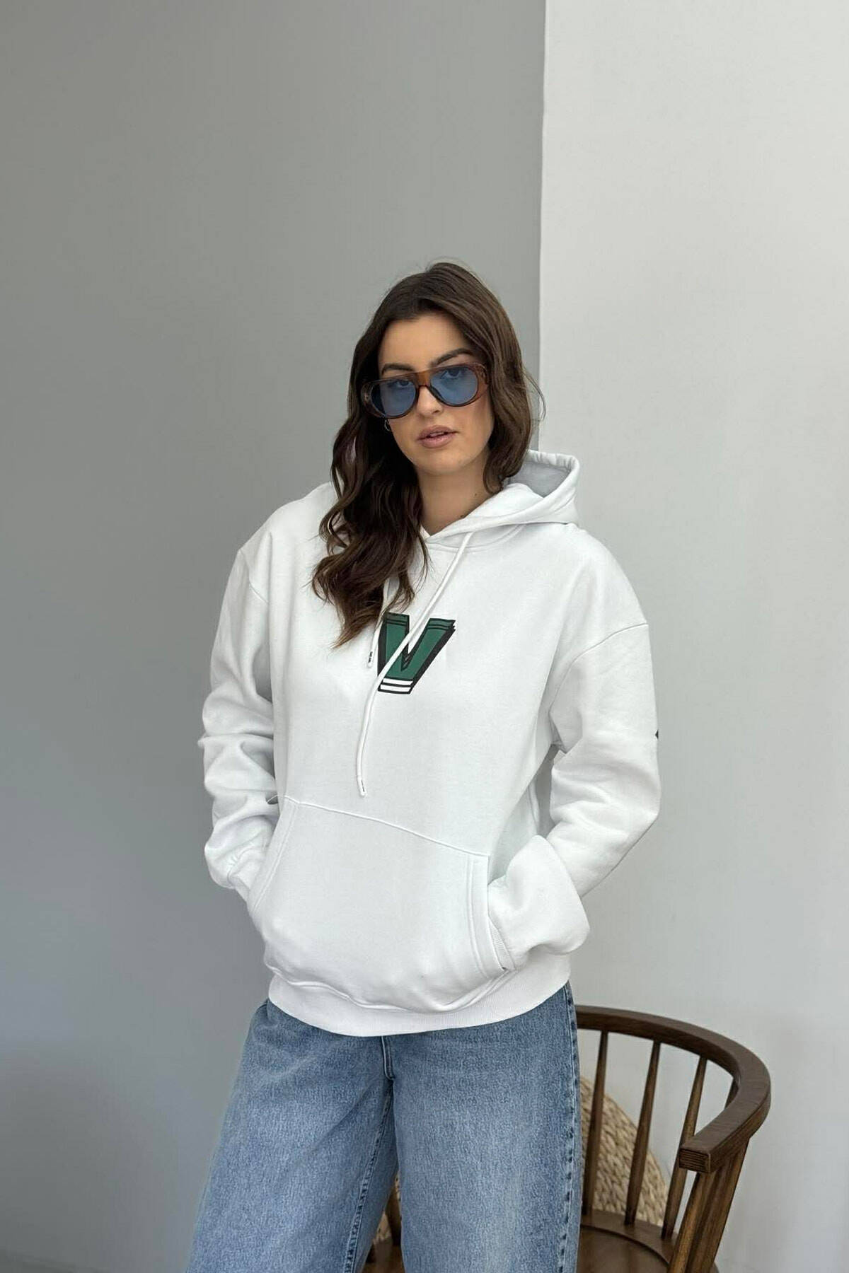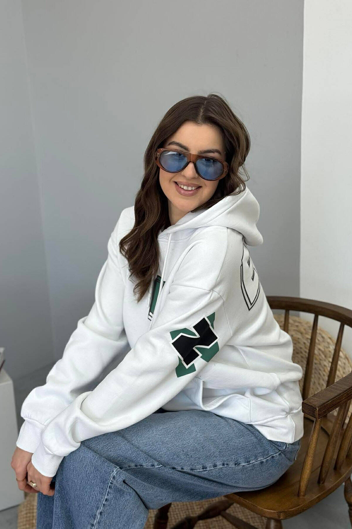 BACK WRITTING FLUFFY WOMEN HOODIE WHITE-E BARDHE