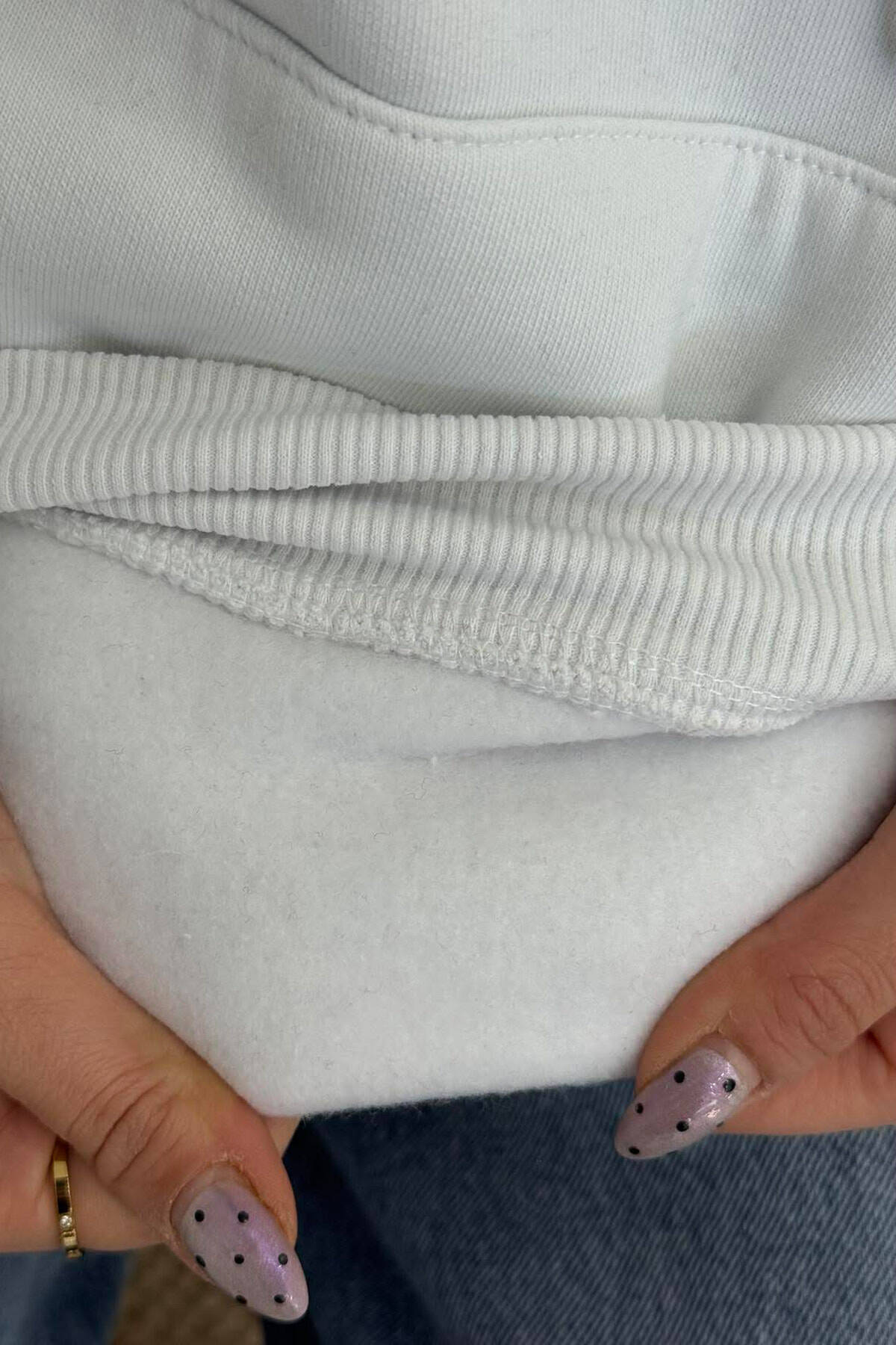 FLUFFY ONE COLOR FRONT WRITTING WOMEN HOODIE CREAM/KREM