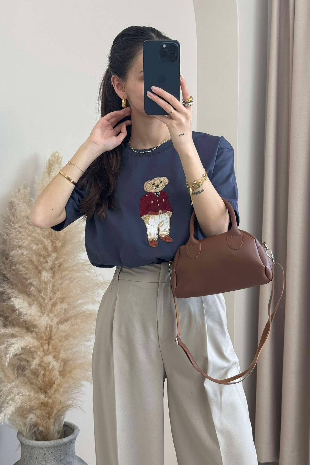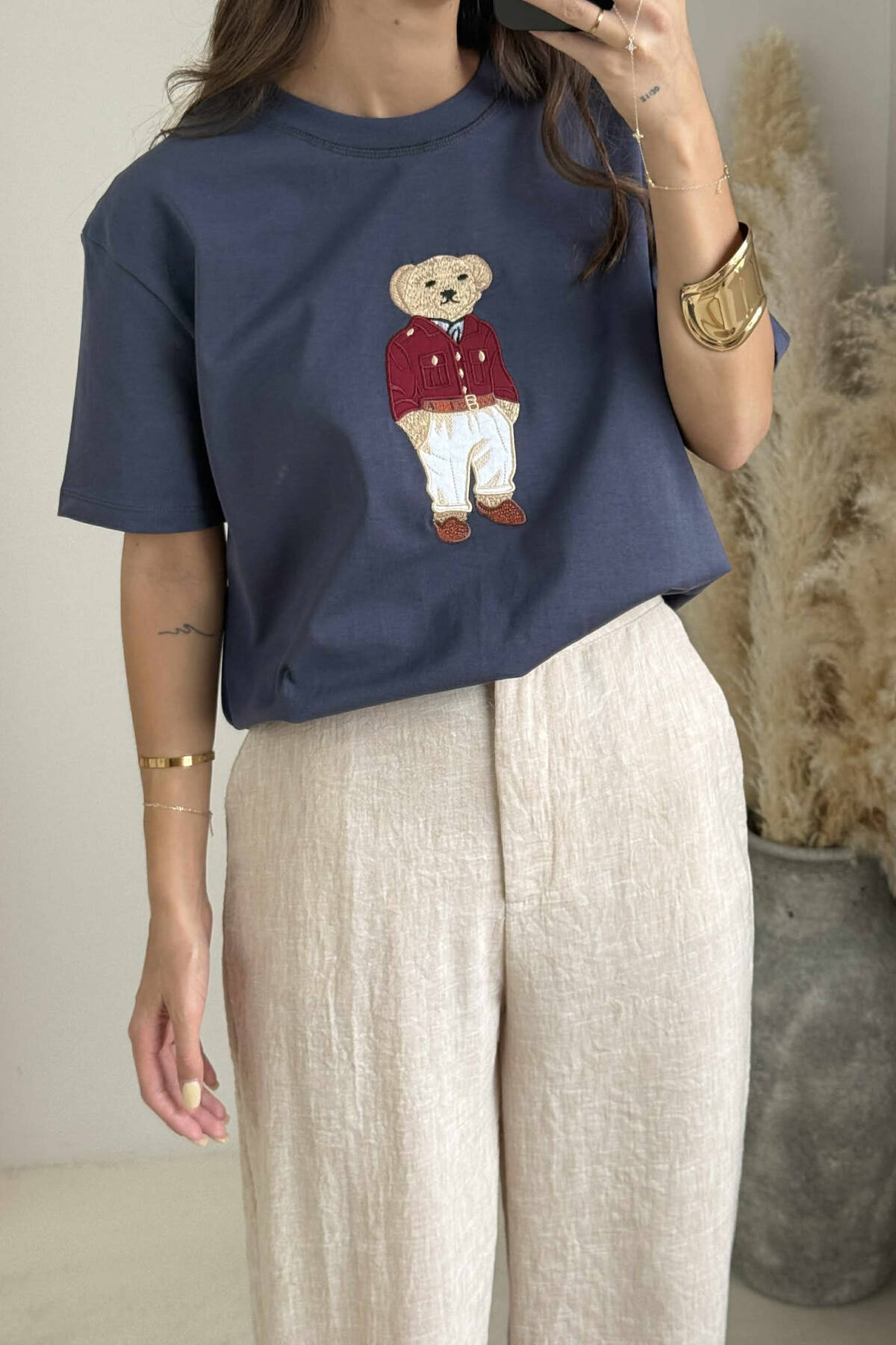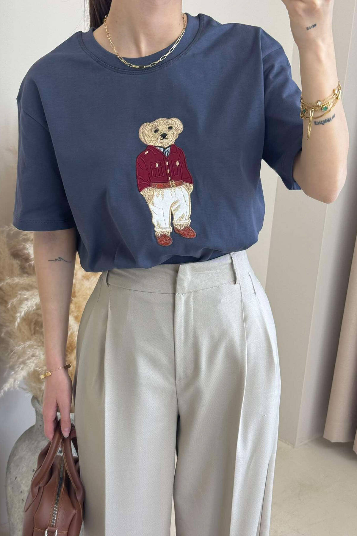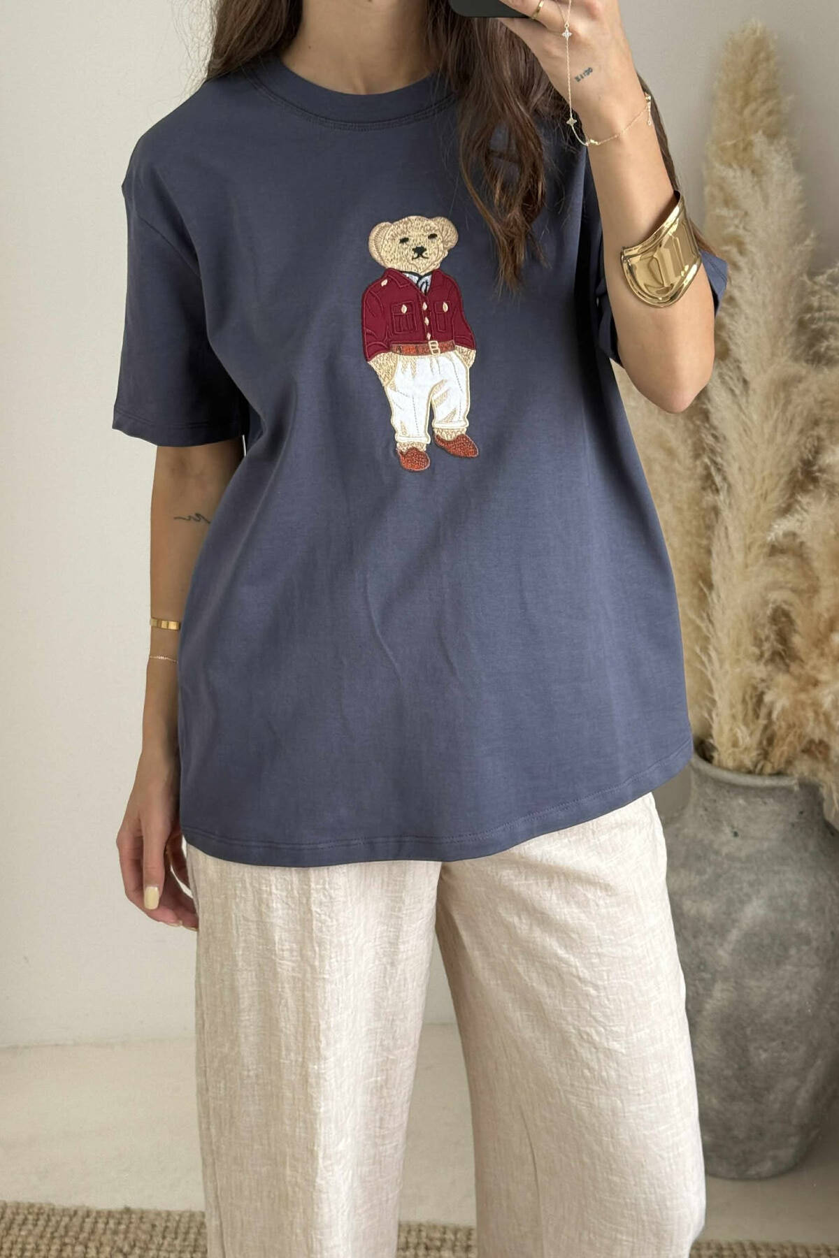 BLUZË ME IMAZHIN E ARUSHIT PËR FEMRA NË NGJYRËN GRI E ERRËT