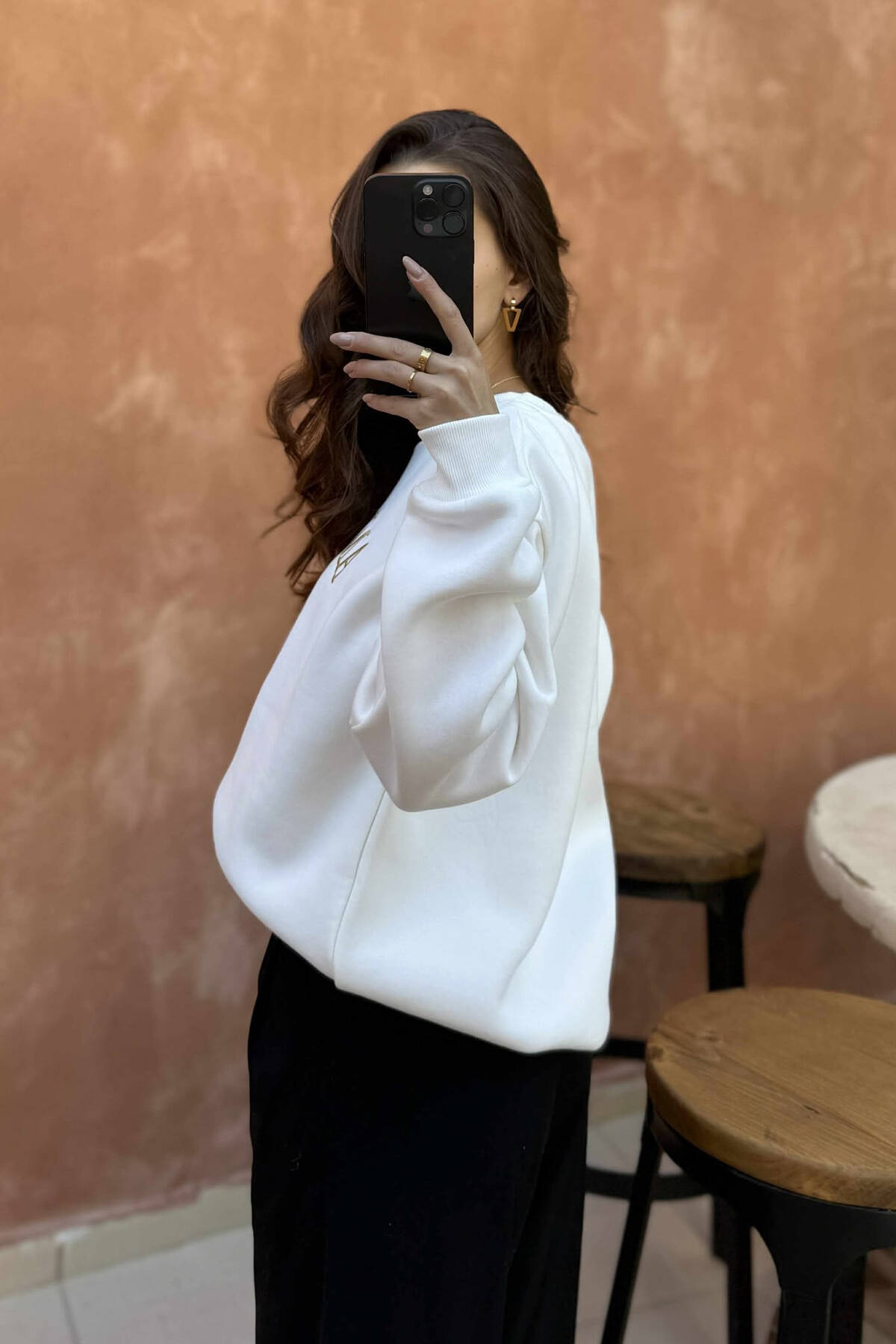 ROUND NECK SIMPLE WOMEN SWEATSHIRT CREAM/KREM