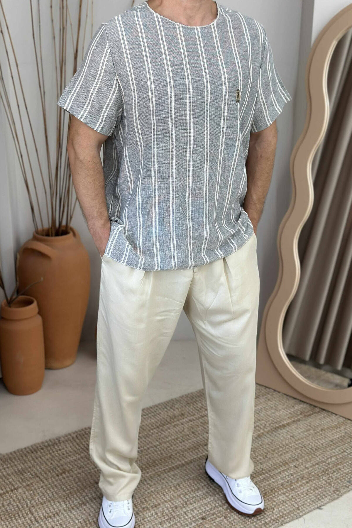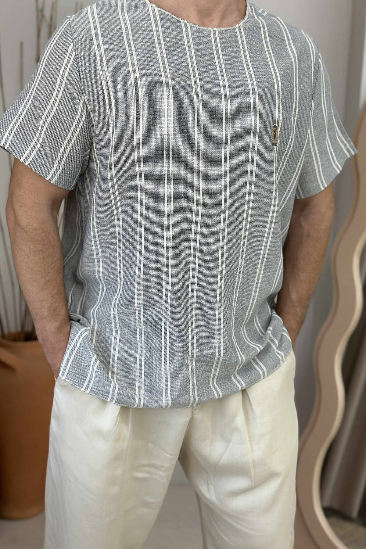BEAR LOGO STRIPED MEN T-SHIRT LIGHT GREY/GZ