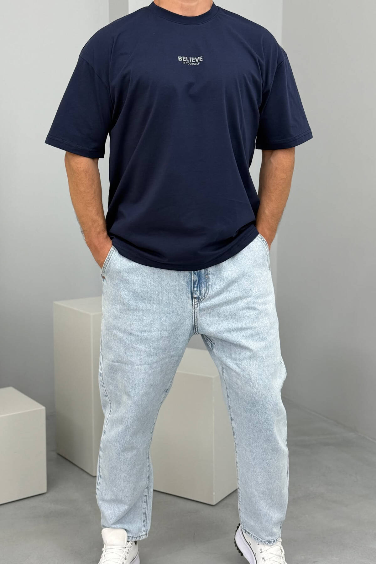 T-SHIRT ME SHKRIME PËR MESHKUJ NË NGJYRËN BLU E ERRËT
