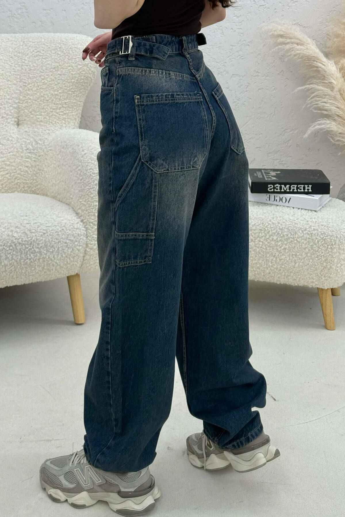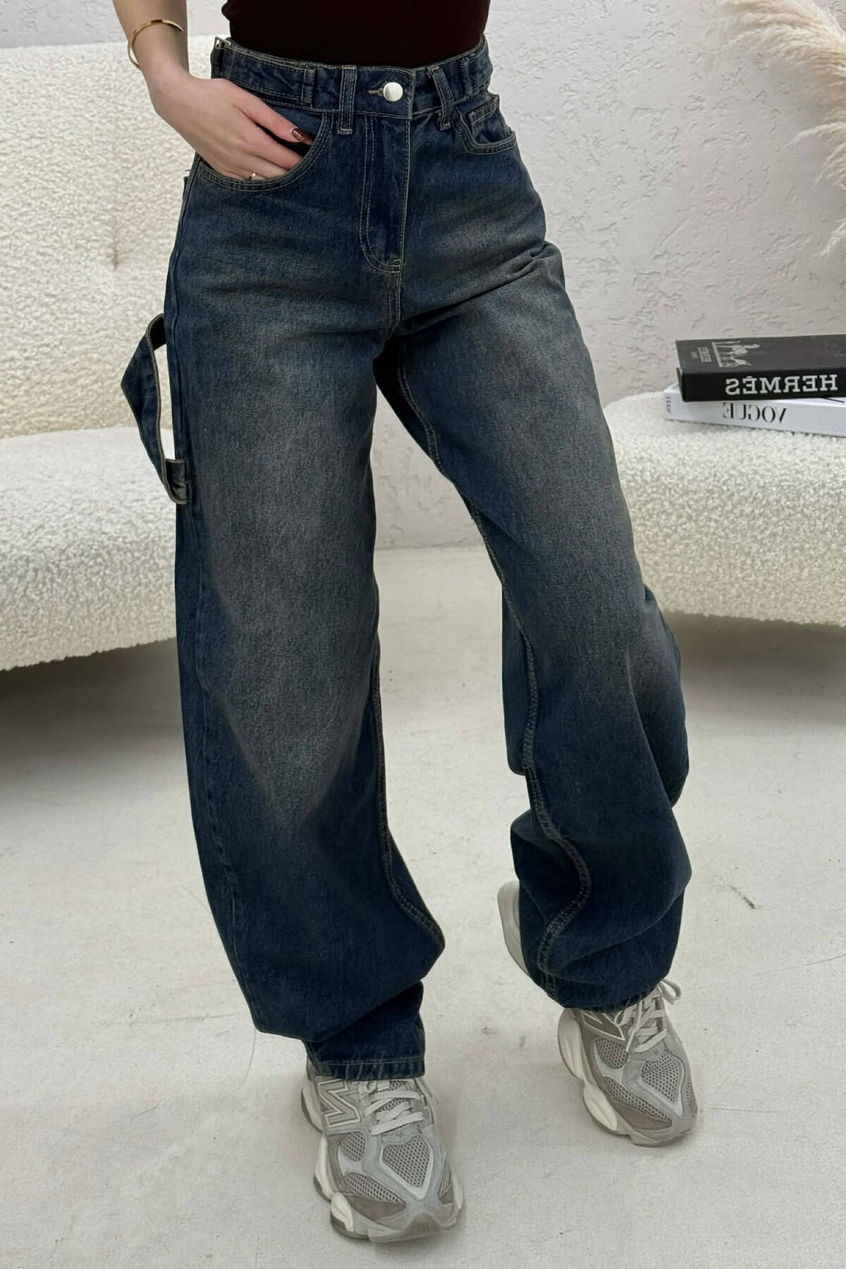 XHINSE PËR FEMRA ME DETAJIN E RRIPAVE NË NGJYRËN BLU