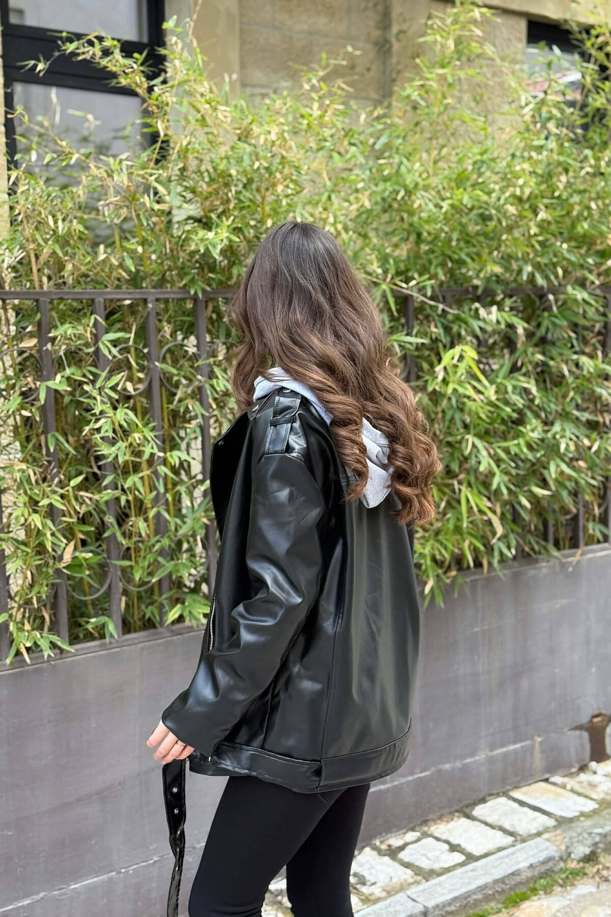 BELT DETAIL LEATHER WOMEN JACKET BLACK/ E ZEZE