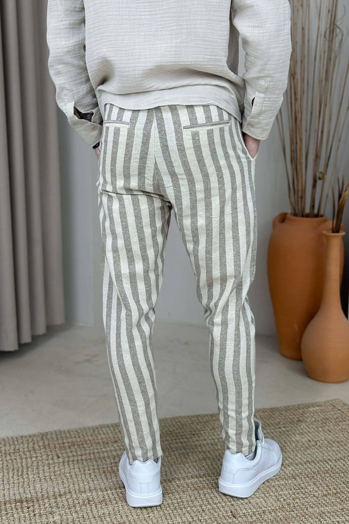 STRIPED DESIGN MEN PANTS BEIGE/BEZHE
