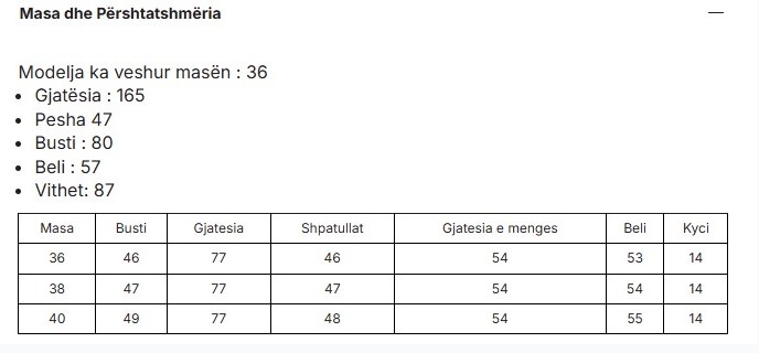 Size chart
