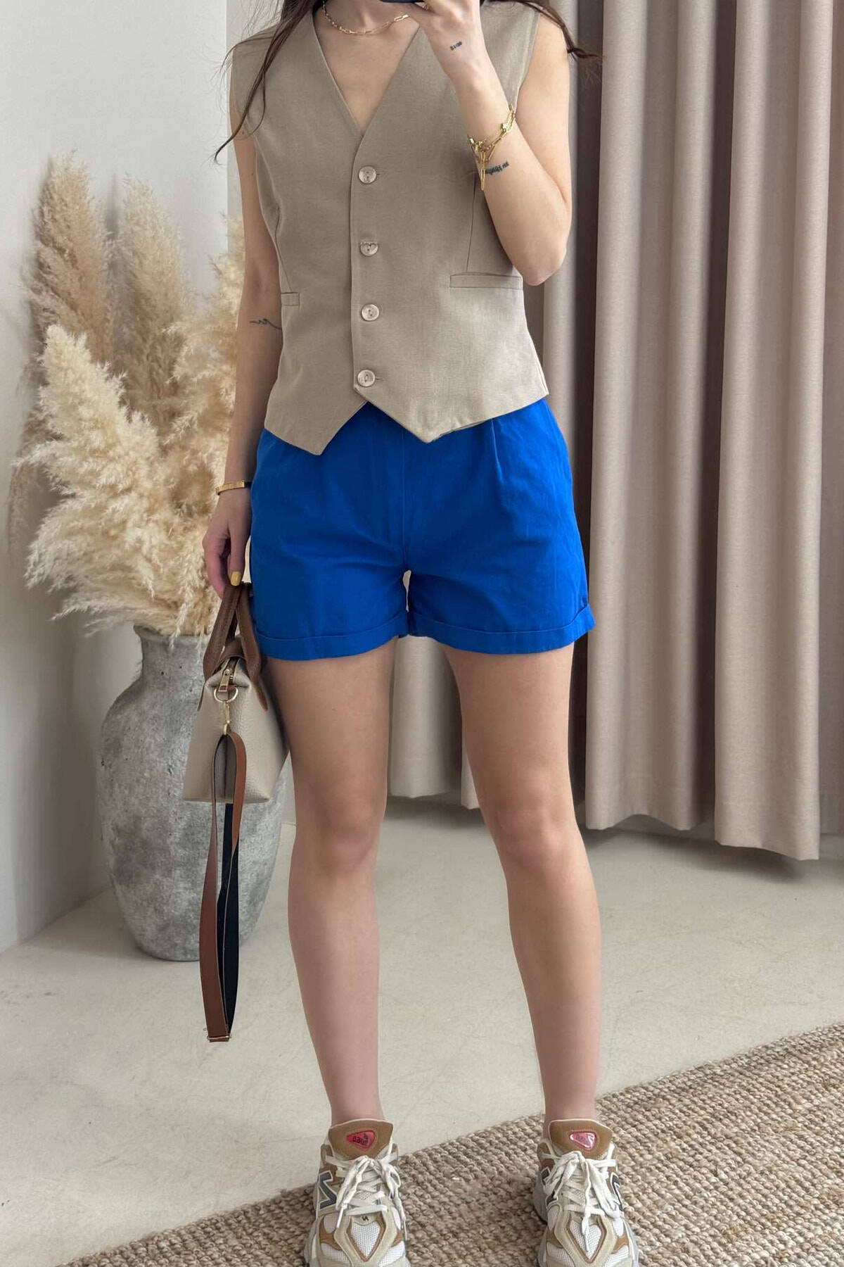BELT DETAIL ONE COLOR WOMEN SHORTS BLUE/BLU
