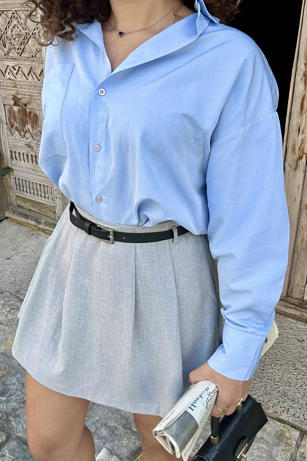 BELT DETAIL ONE COLOR WOMEN SKORT LIGHT GREY/GZ