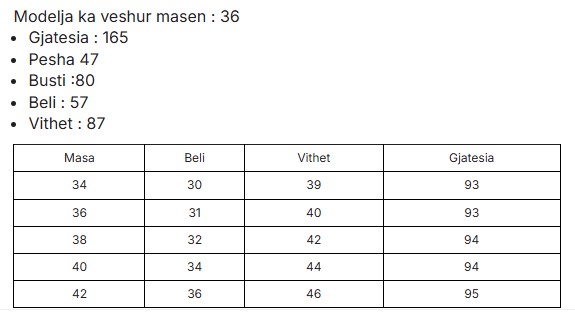 34-XS, 36-S, 38-M, 40-L, 42-XL