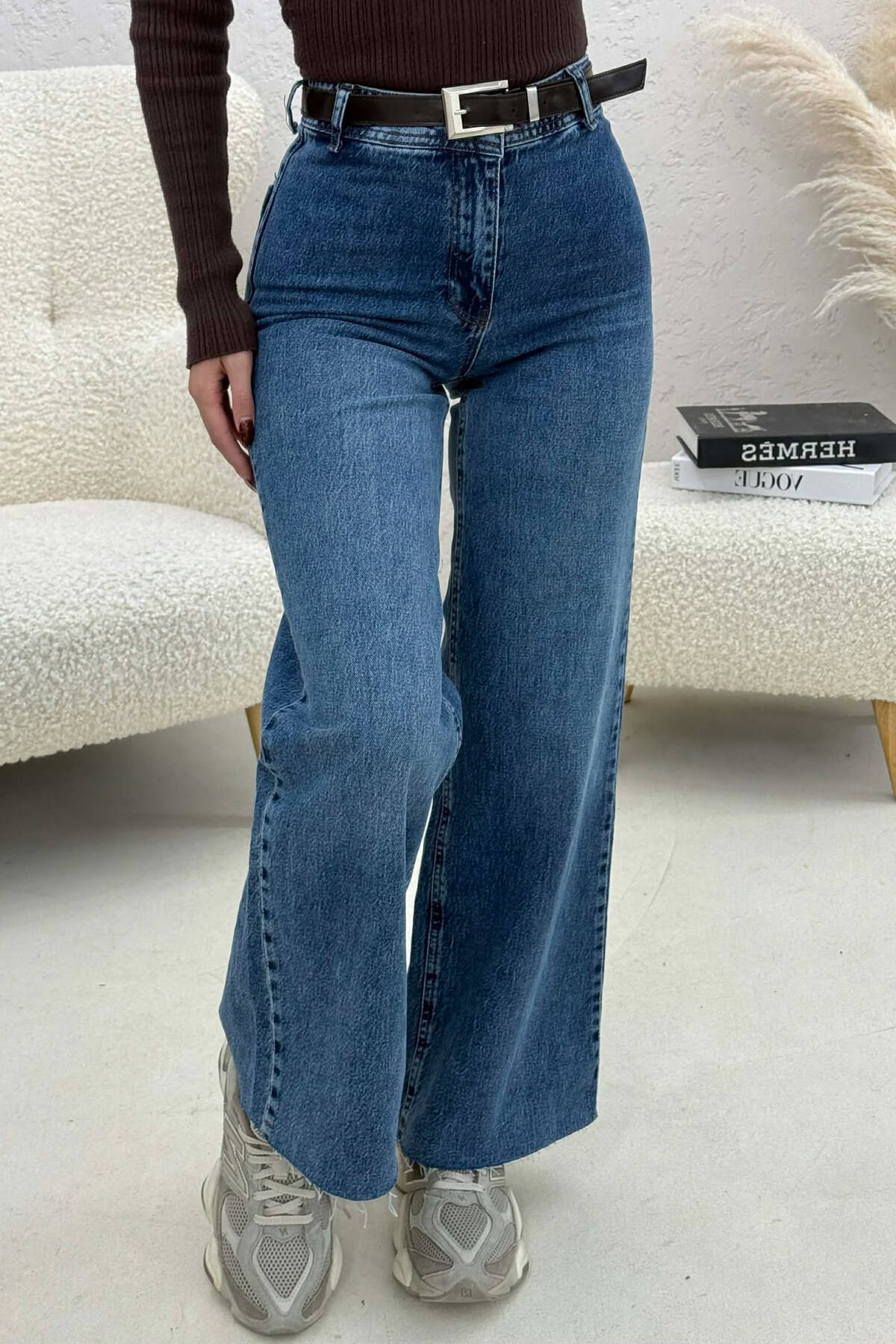 BELT DETAIL SIMPLE WOMEN JEANS BLUE/BLU