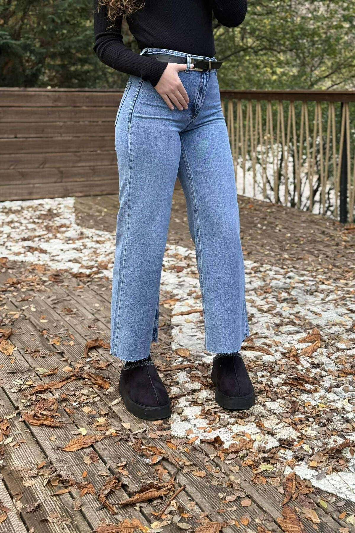 ONE COLOR SIMPLE WIDE LEG WOMEN JEANS BLACK/ E ZEZE