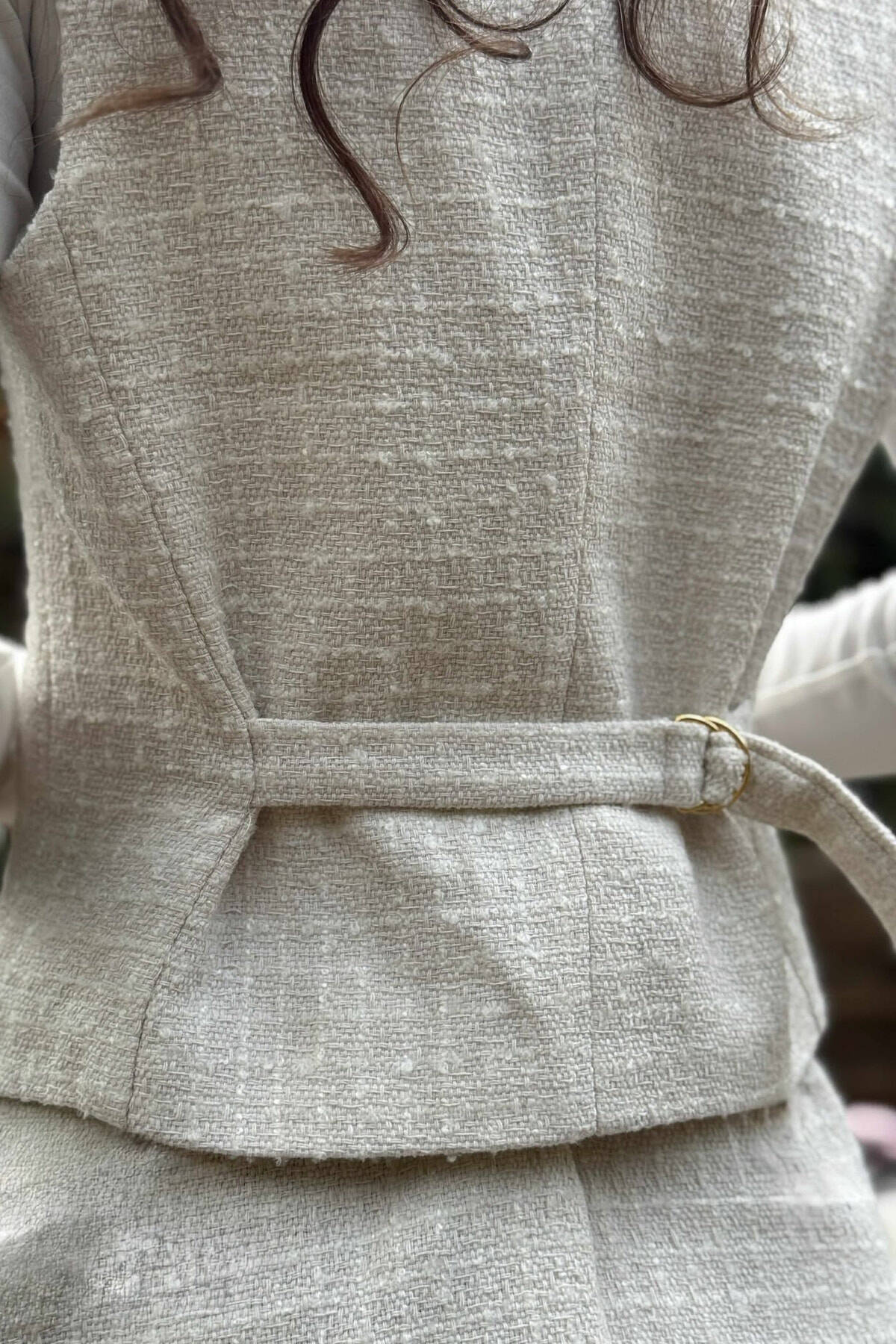BELT DETAIL VEST+SKIRT ONE COLOR WOMEN SET CREAM/KREM