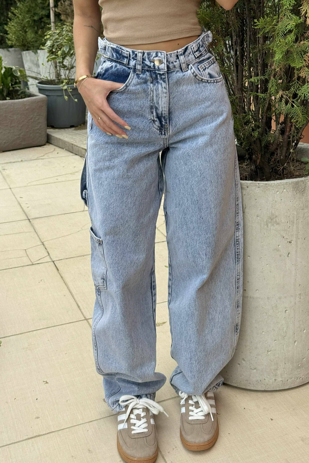 BELT DETAILS BAGGY WOMEN JEANS BEAUBLUE/BBL