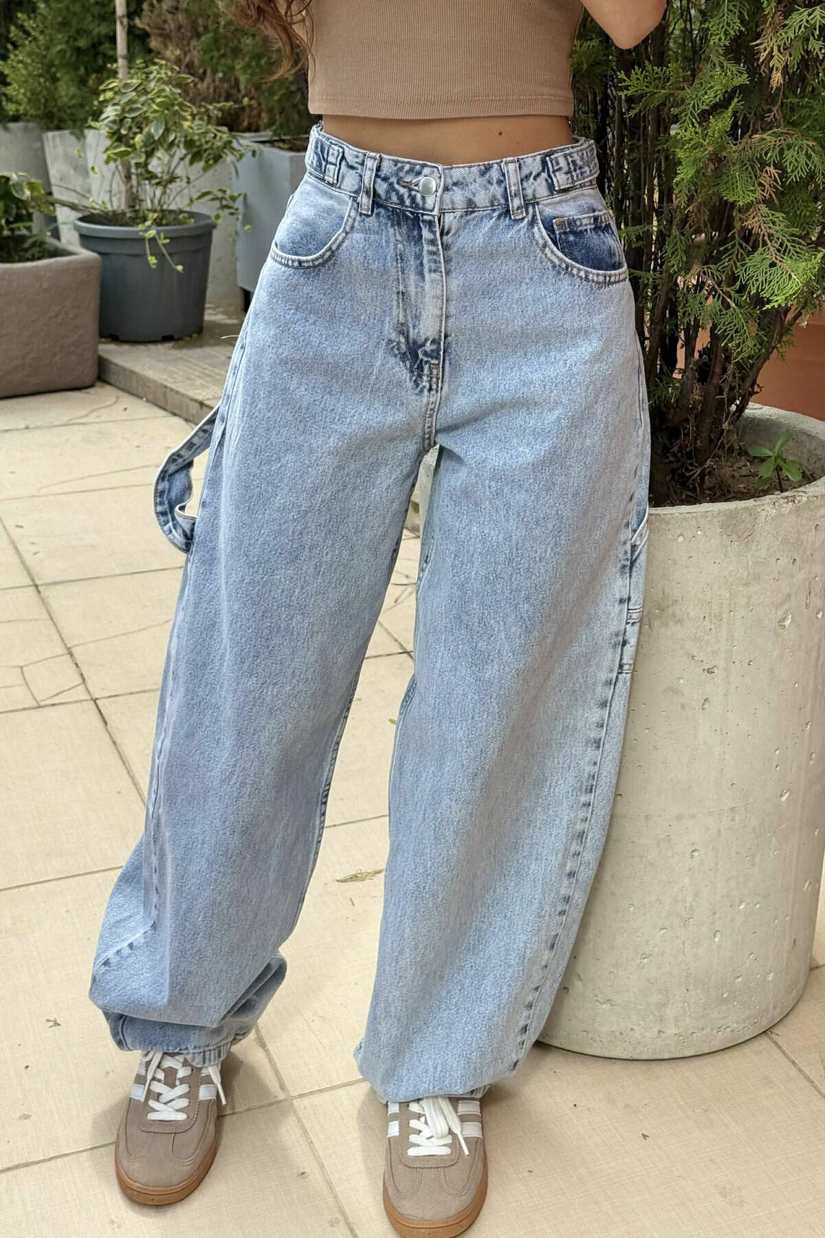 BELT DETAILS BAGGY WOMEN JEANS IN LIGHT BLUE COLOR
