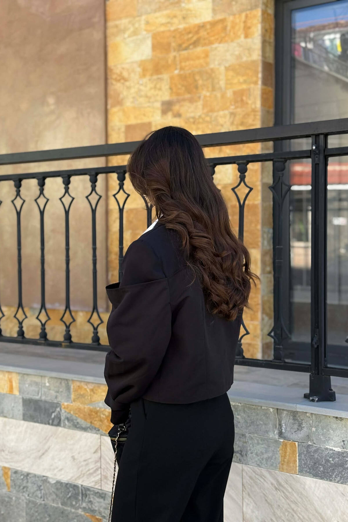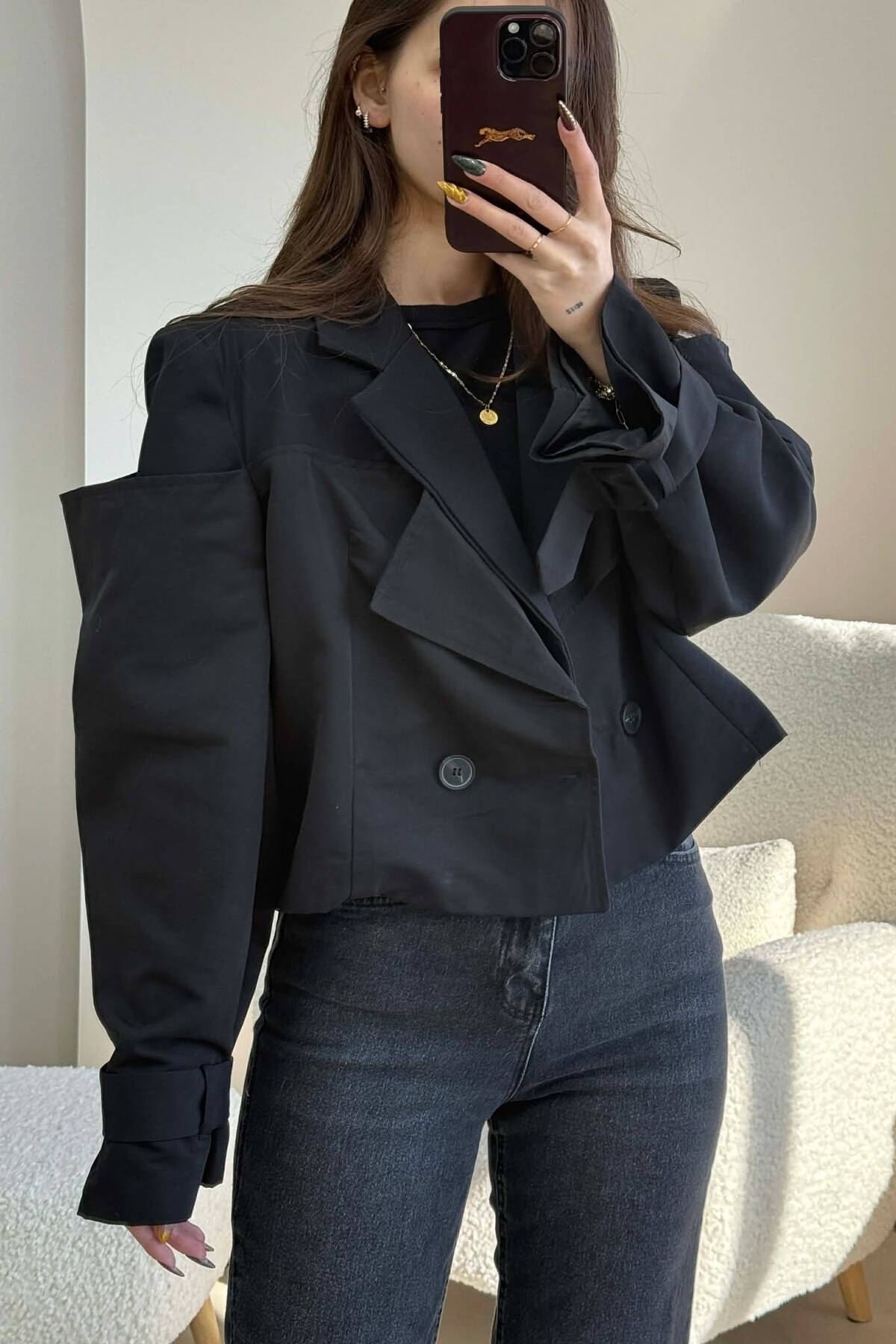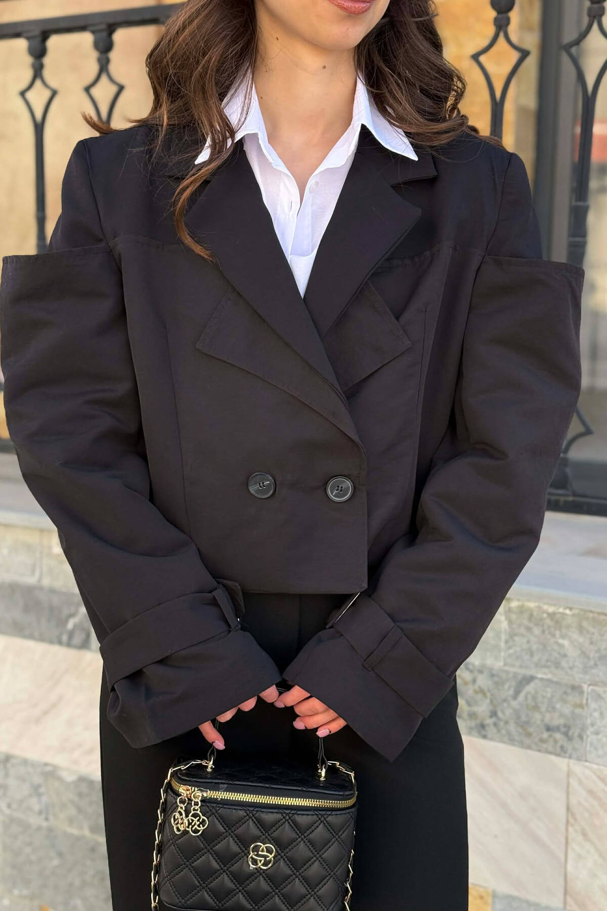 BELT DETAILS CROPPED WOMEN JACKET BLACK/ E ZEZE