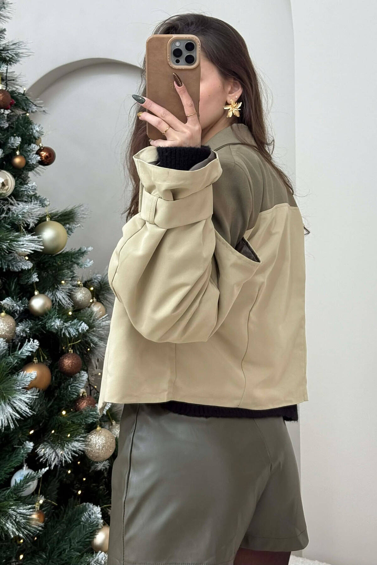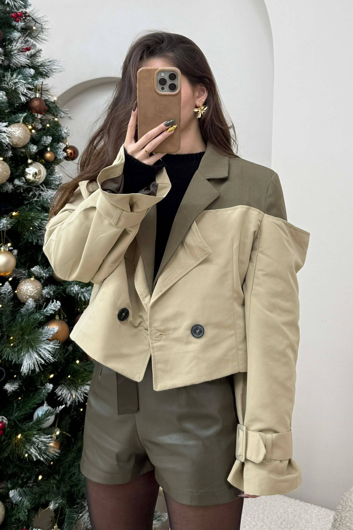 BELT DETAILS CROPPED WOMEN JACKET OLIVE/ULLI