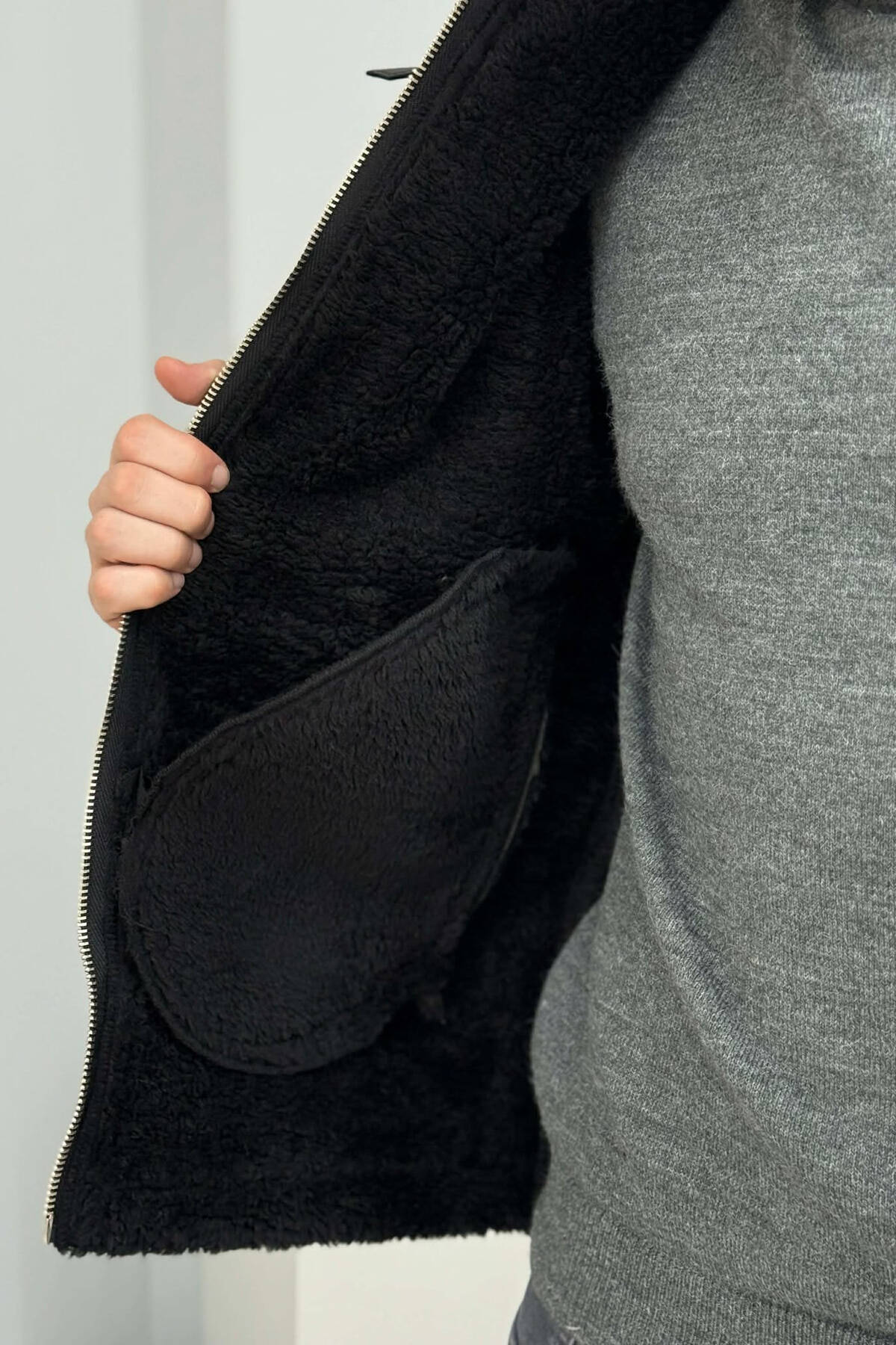 ONE COLOR FLUFFY SIDE POCKET MEN PUFFER JACKET DARK GREY/GEE