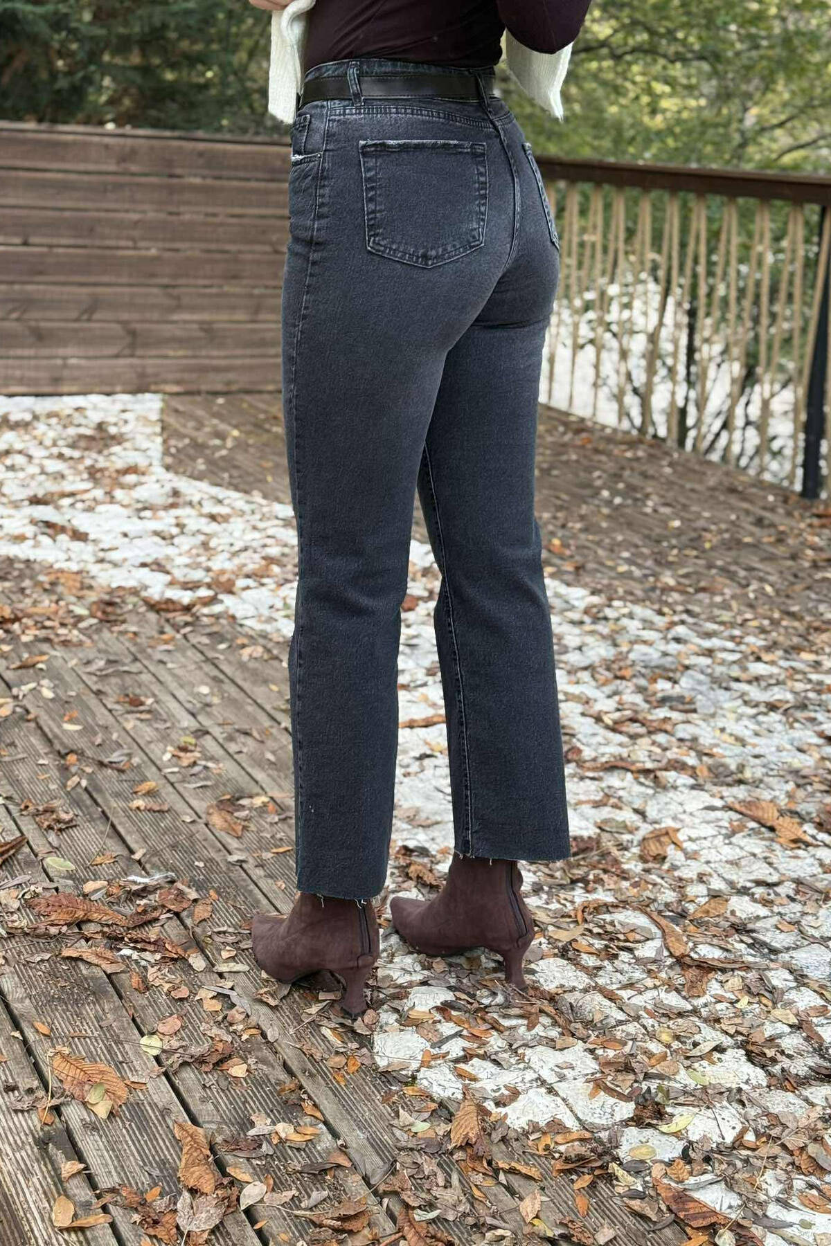 BELTED ONE COLOR SIMPLE WOMEN JEANS DARK GREY/GEE