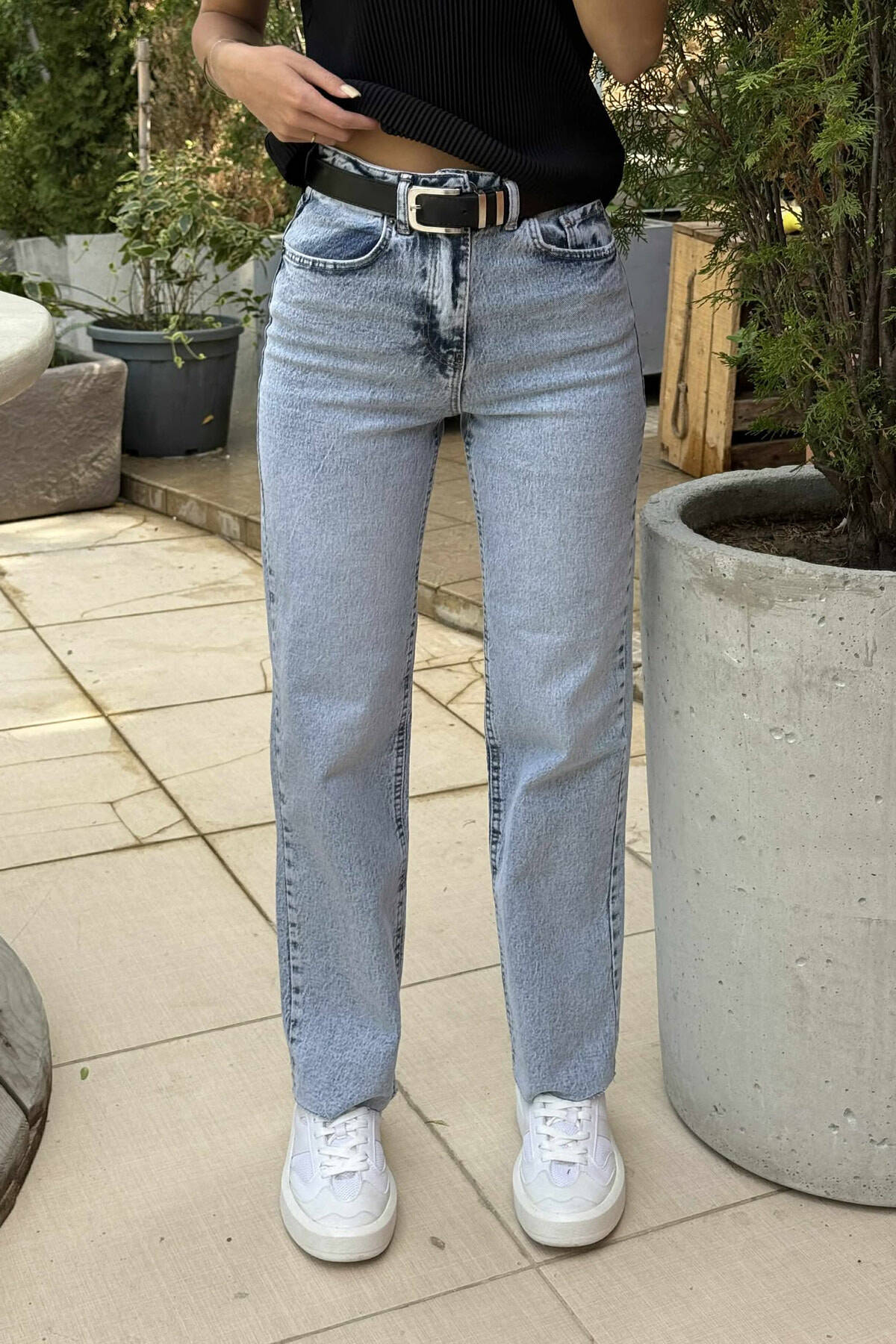 ONE COLOR BELT DETAIL WOMAN JEANS LIGHTBLUE/BZ