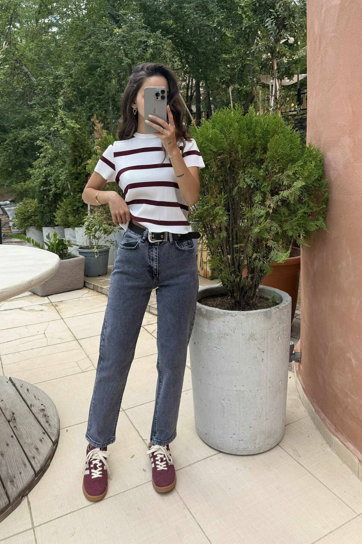 BELTED SIMPLE WOMEN JEANS GREY/GRI