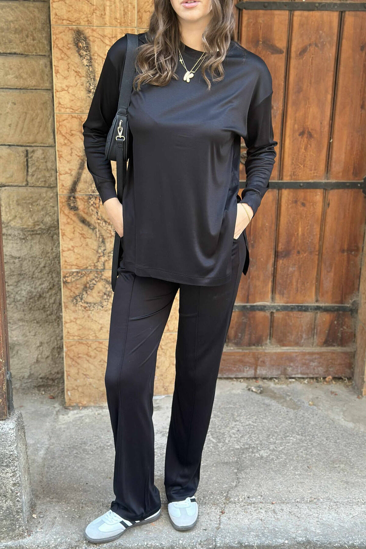 BLOUSE+WIDE LEG SWEATPANTS ONE COLOR WOMEN SET IN BLACK COLOR