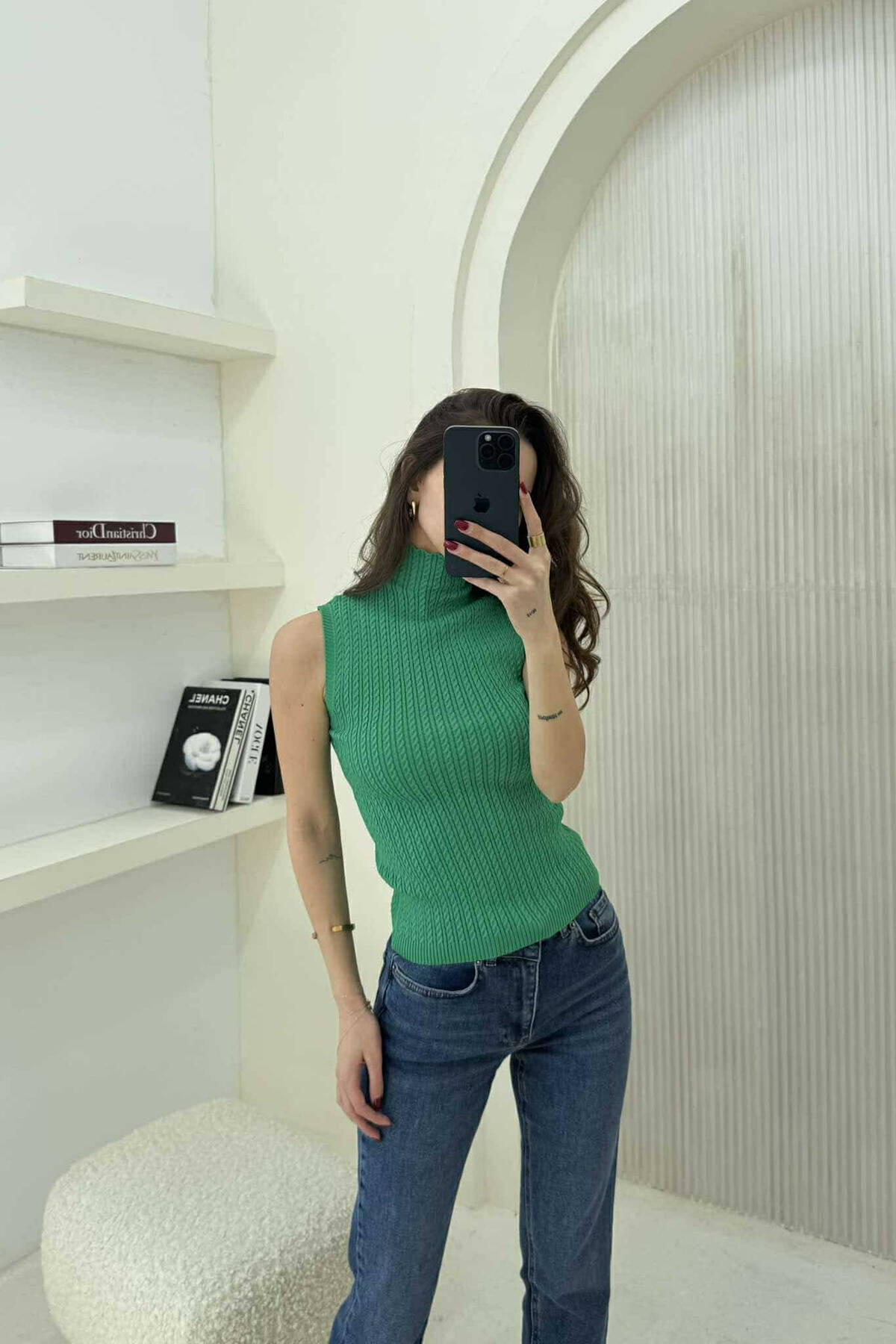 KANATIERE NJË NGJYRËSHE ME JAKË GOLF PËR FEMRA NË NGJYRË TË BARDHË
