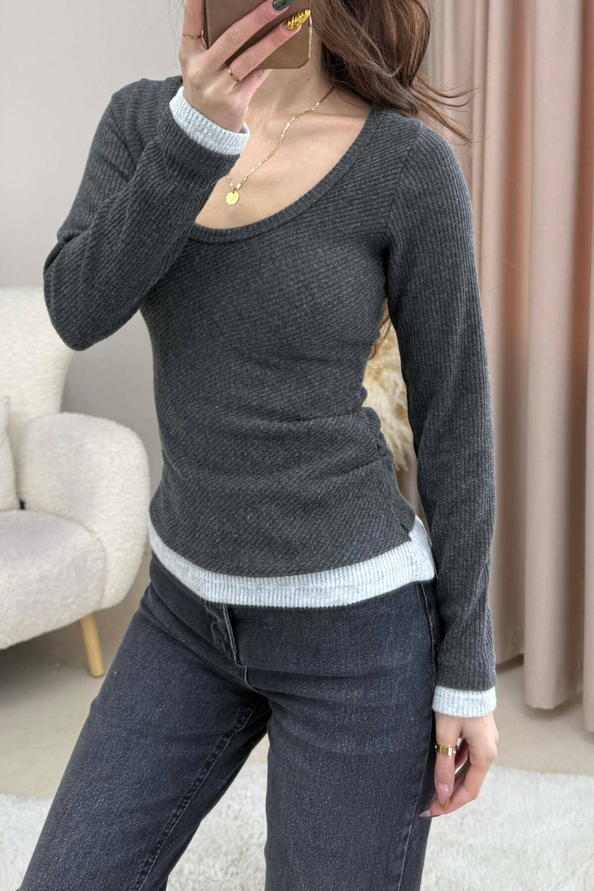 TRIKO NJE NGJYRESHE ME JAKE TE RRUMBULLAKET PER FEMRA NE NGJYRE GRI TE ERRET